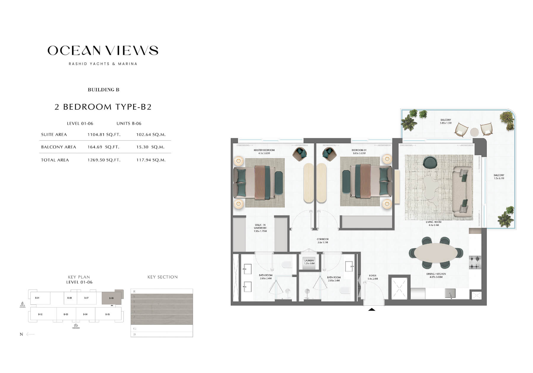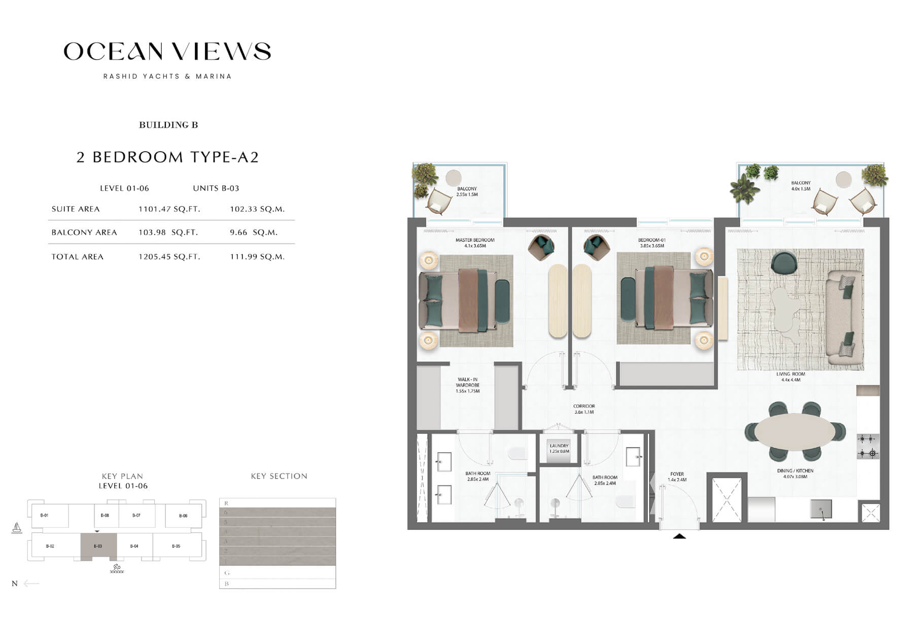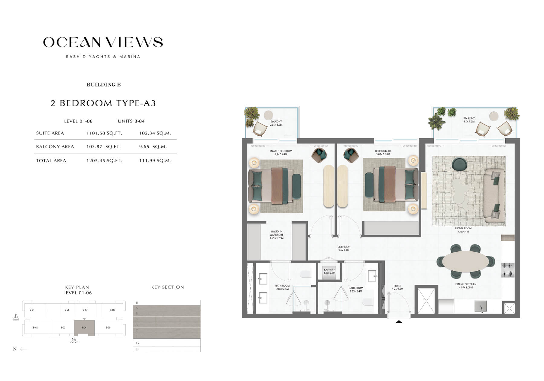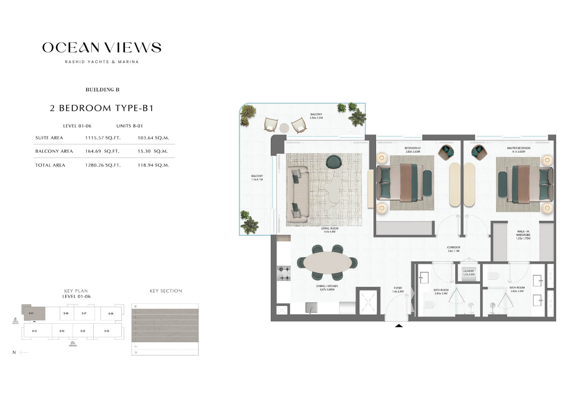 Ocean Views, situated in the Rashid Yachts & Marina, offers multiple and well-planned floor layouts, featuring 1, 2 & 3-bedroom waterfront apartments. The properties will cater to a variety of lifestyle choices, from the intimacy of a one-bedroom apartment to the comfort of a three-bedroom home. The greyscale interiors infuse the layout with ample indulgence, where each pin-drop, seconds in between are ticking in such sophisticated unison, always on cue to an elevated living experience.