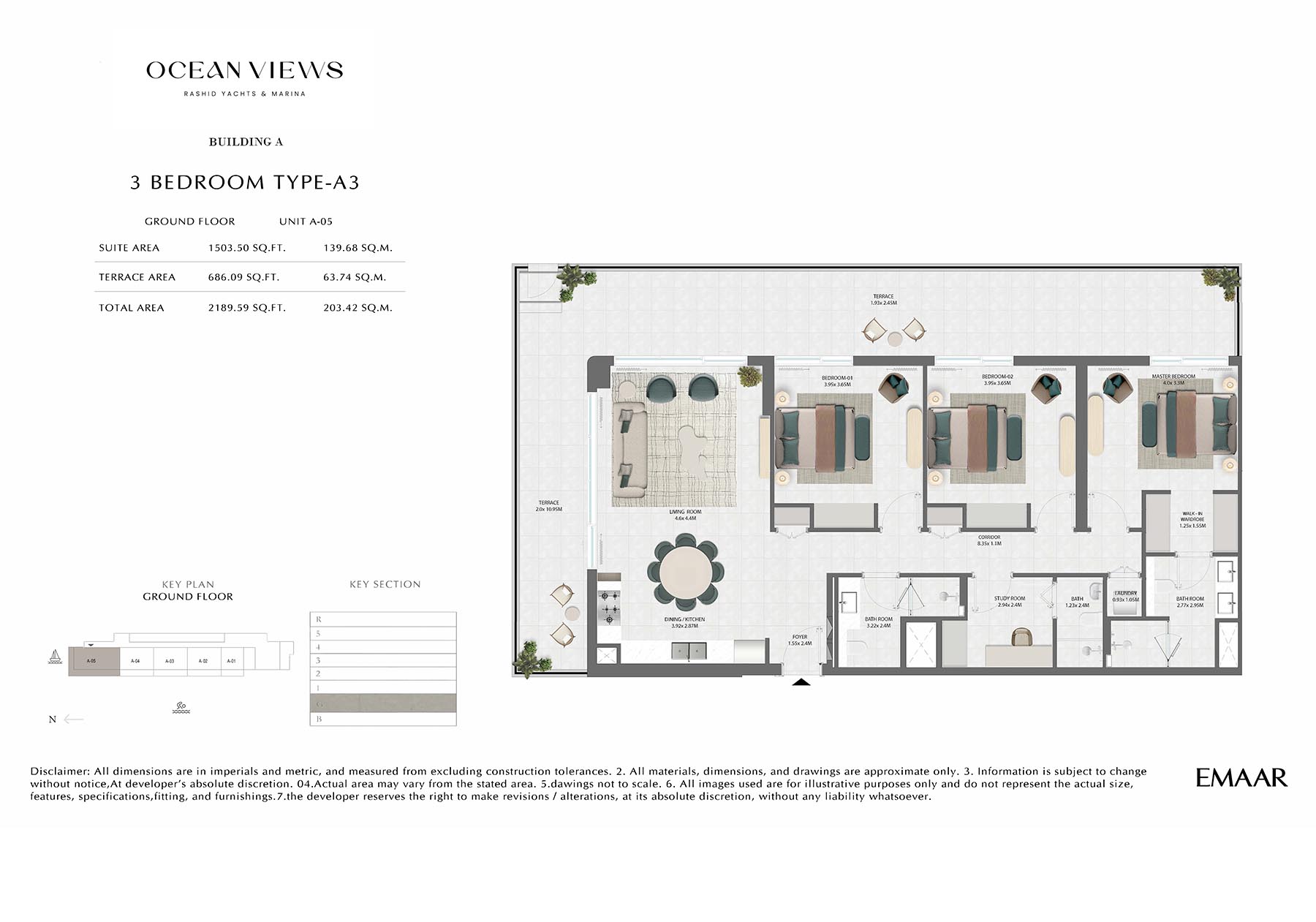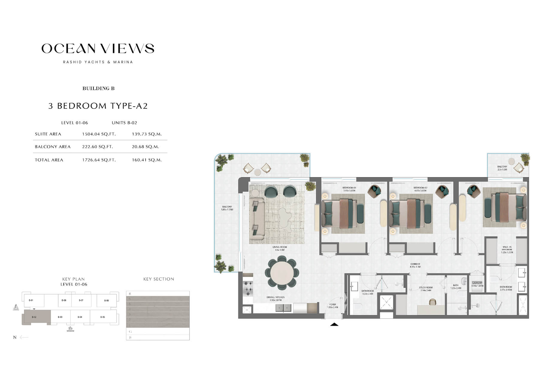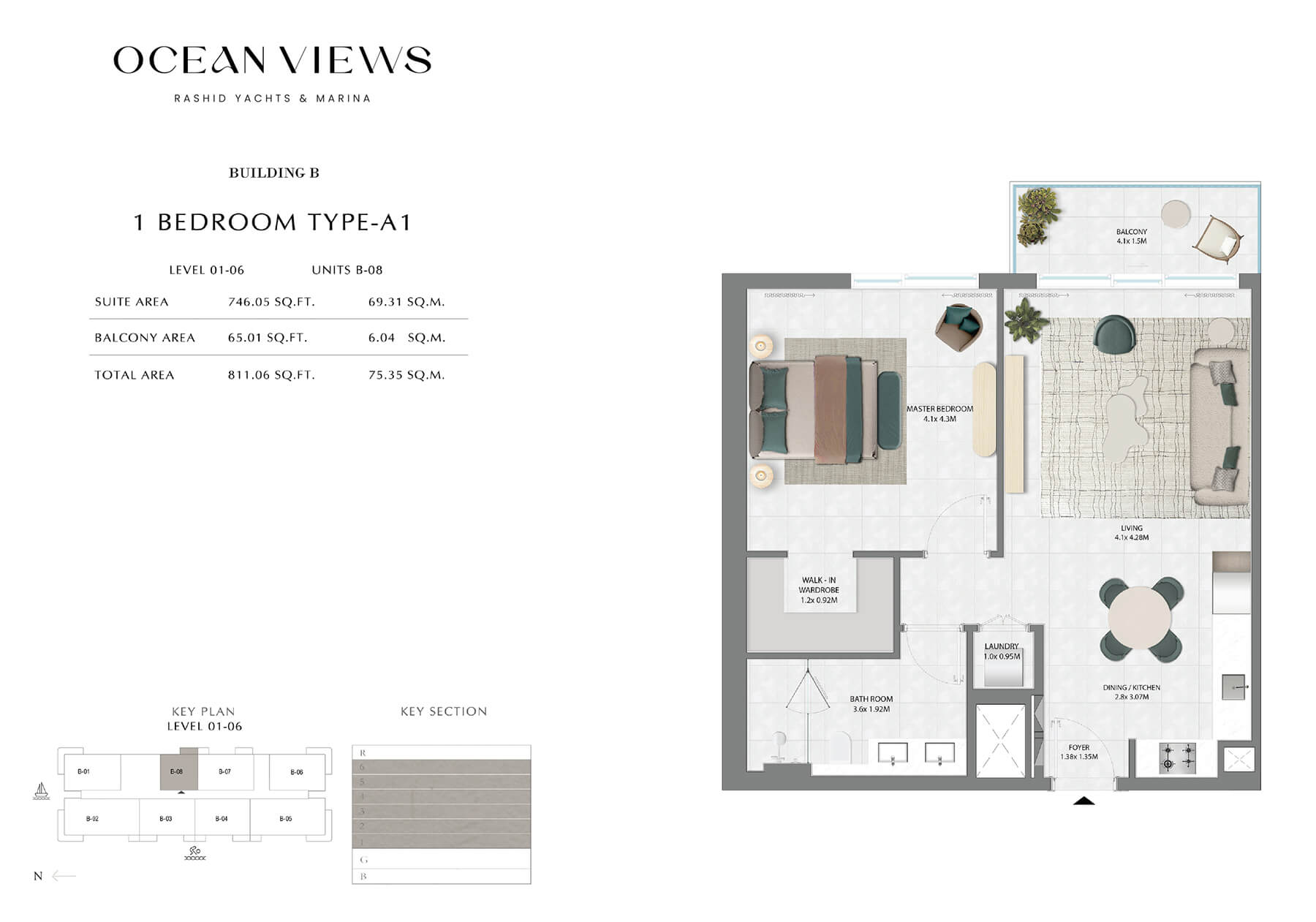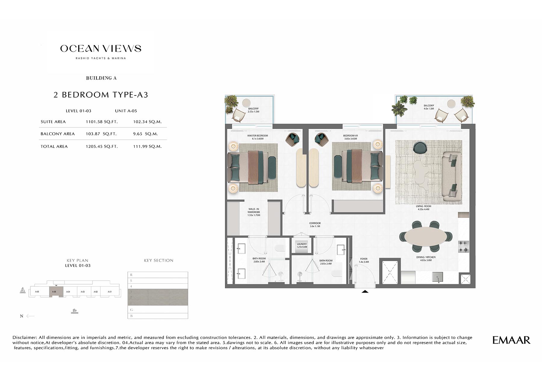 Ocean Views, situated in the Rashid Yachts & Marina, offers multiple and well-planned floor layouts, featuring 1, 2 & 3-bedroom waterfront apartments. The properties will cater to a variety of lifestyle choices, from the intimacy of a one-bedroom apartment to the comfort of a three-bedroom home. The greyscale interiors infuse the layout with ample indulgence, where each pin-drop, seconds in between are ticking in such sophisticated unison, always on cue to an elevated living experience.