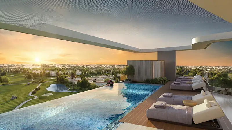 Golf Grove by Regent Developments offers stylish studios and 1-bedroom apartments that is located in Dubai Production City (IMPZ). This exquisite 8-storey low-rise development blends masterful craftsmanship with urban sophistication, highlighted by a striking glass façade. Nestled within rich greenery, every open-concept residence frames sweeping views of the vast Jumeirah Golf Course. Designed to foster a sense of belonging, each home features luxurious finishes, thoughtfully curated spaces, and grand, functional layouts that balance elegance and comfort.