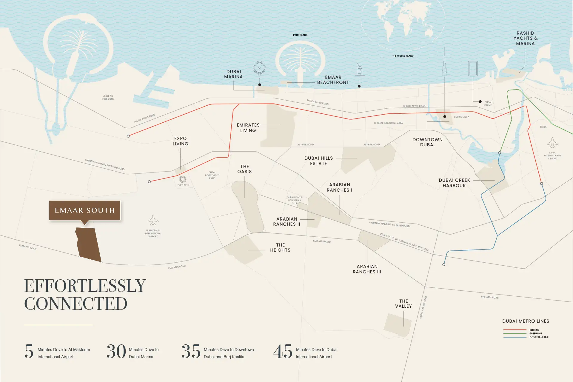 - Dubai International Airport: 45 Minutes