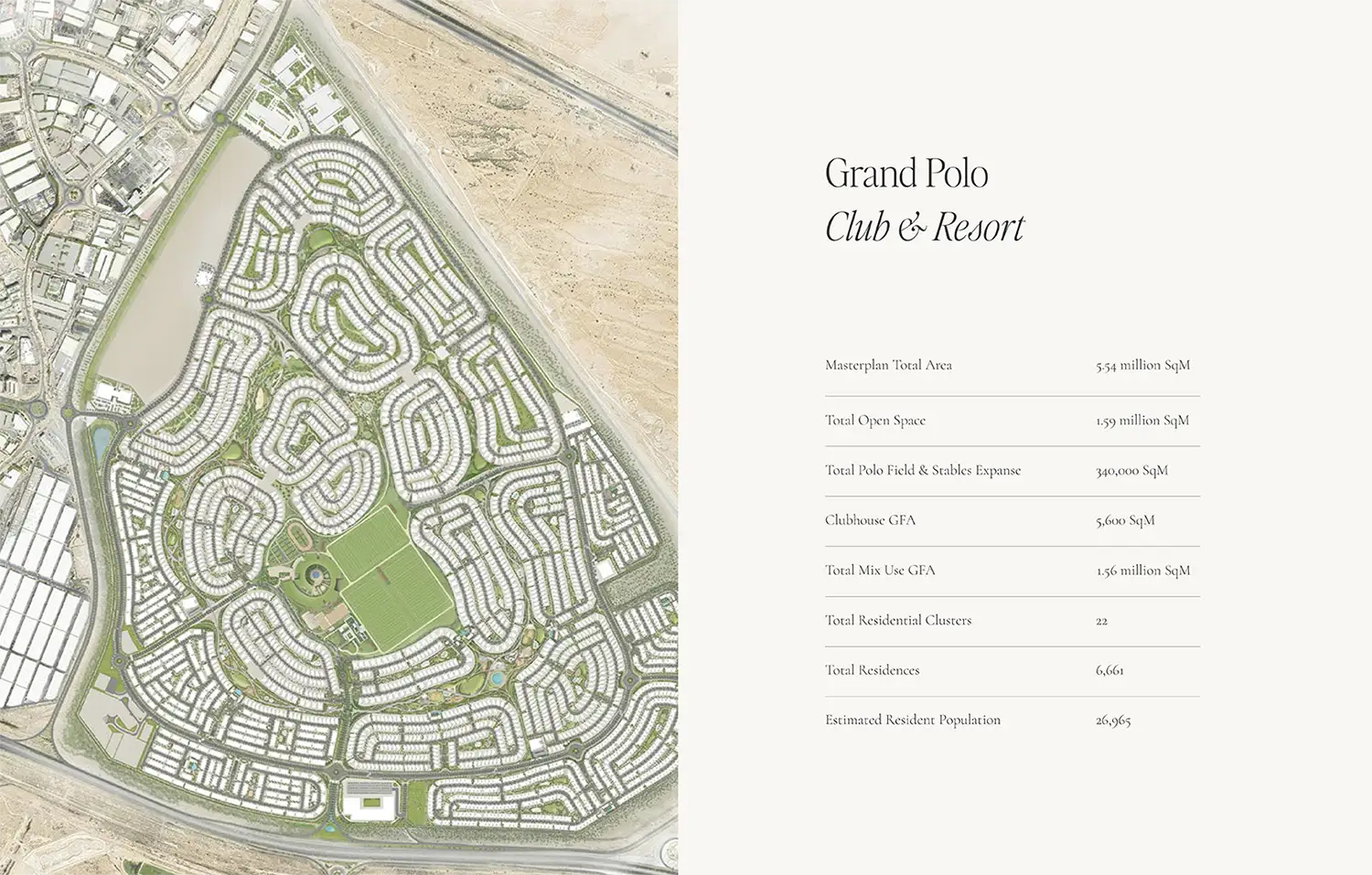 The Grand Polo Club and Resort Thoughtfully designed by Emaar properties, the community master plan is uniquely inspired by the use of space. Spread out as low-density development, this modern architectural marvel is a collection of large villas featuring. The open areas reserved for its community enhance residents experience according to the designer ensuring socialising.