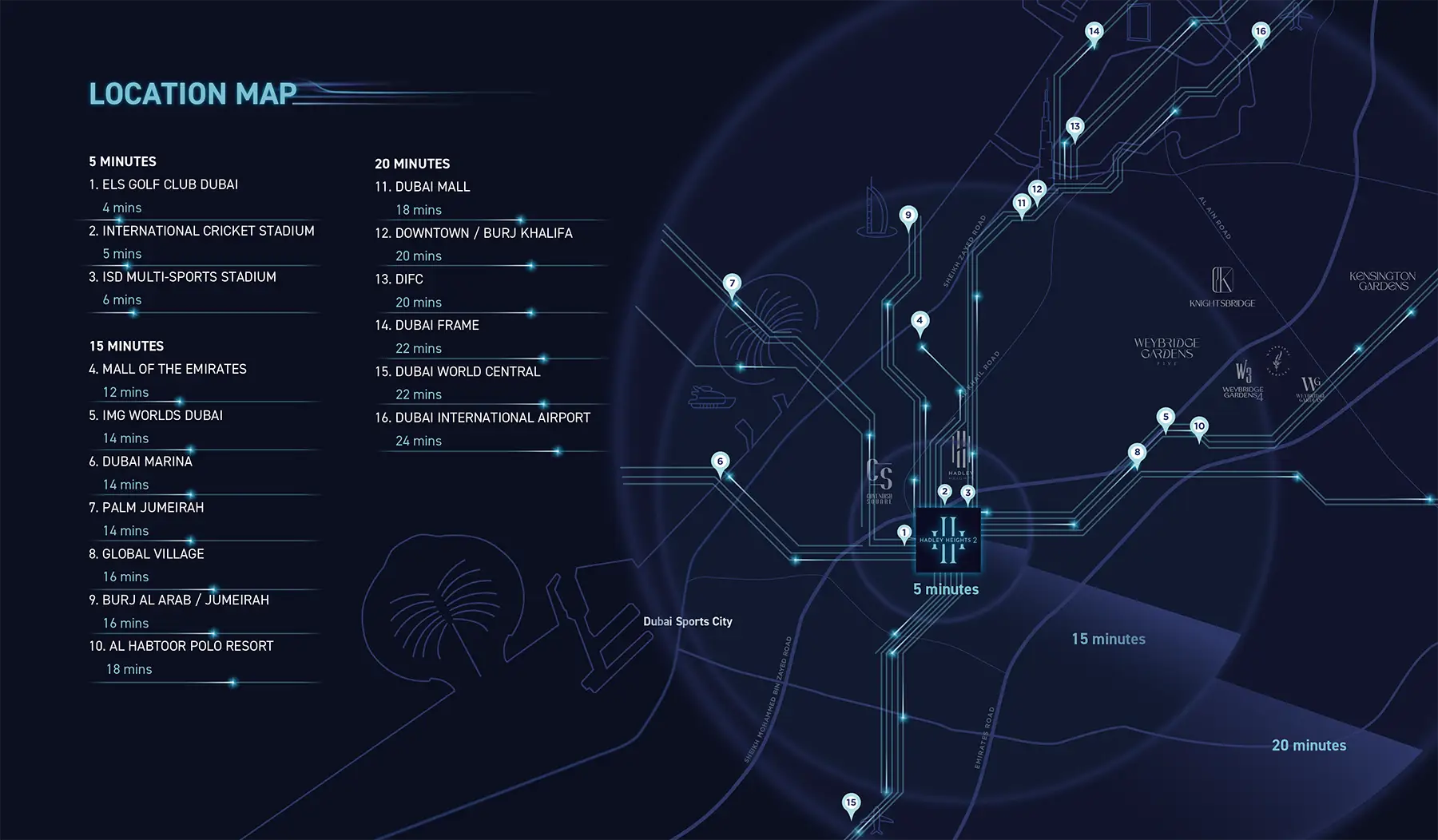 Located in the heart of Dubai Sports City, Dubai, Hadley Heights 2 offers stunning views. This unique development offers a world-class lifestyle, exceptional views, and unmatched connectivity all just minutes away. Perfectly located, it fulfills every need, inviting you to immerse yourself in premium amenities and top-tier services. All the essentials and iconic destinations you may need are within easy reach. Whether it’s sophisticated venues for business, glamorous malls and restaurants, tranquil green spaces, or cutting-edge attractions like the Museum of the Future, every moment here is a step into elevated living.