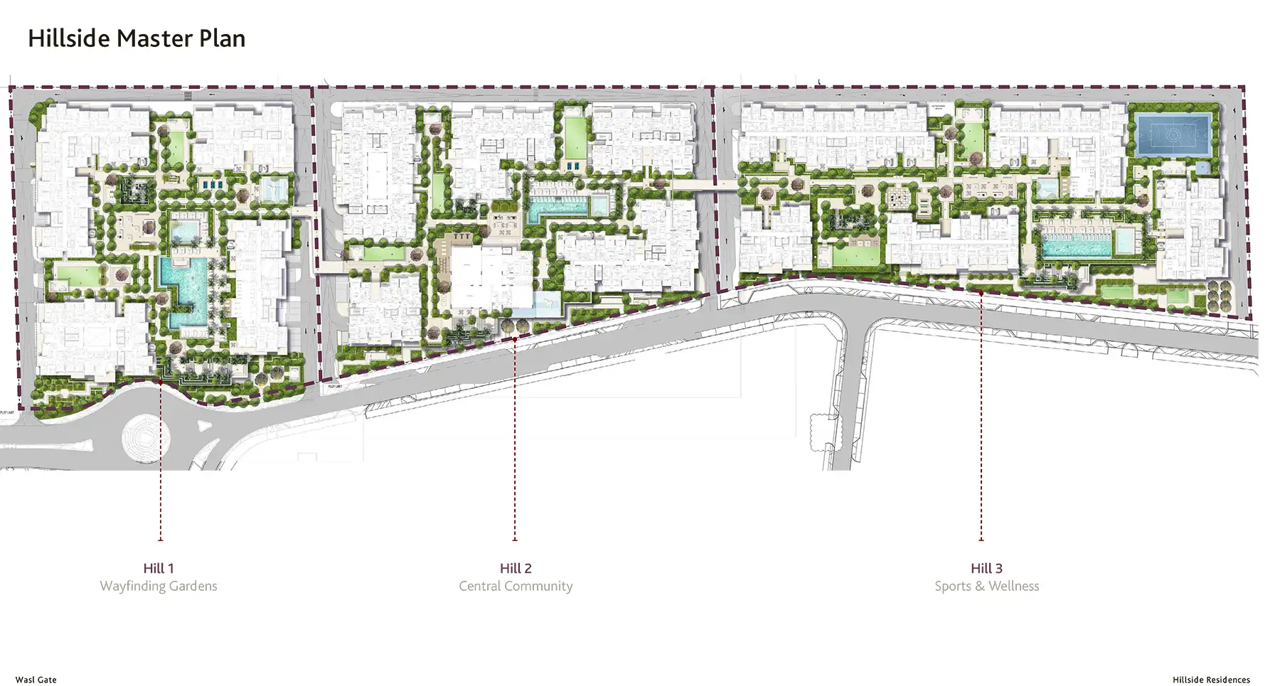 The master plan of Hillside Residences 3, developed by Wasl Properties, is a considerately crafted design that seamlessly blends modern luxury with the peacefulness of nature. Nestled within the lush surroundings of this location community, this residential development features a carefully planned layout that prioritizes space, comfort, and a melodious connection to the environment. This development is purposely placed to movement views of the elegantly designed green spaces, and easy-going parks, offering residents a peaceful, atmosphere.