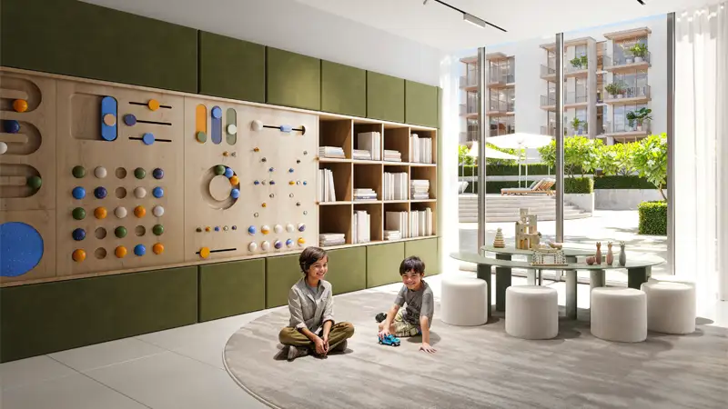 It is located between the expansive green spaces along the Sheikh Mohammed Bin Zayed Road, this low-rise development is set in a vibrant and flourishing community. The project offers a wide range of modern amenities fitted to enhance the lifestyle of its residents, including a spacious swimming pool, a fully-equipped gym, and a dedicated yoga area. The surrounding lush greenery reflects the nature to the environment, creating a tranquil atmosphere. In addition to that there are various modern entertaining facilities such as sports area for adults and kids separately designed to ensure that families and children have plenty of options for entertainment and relaxation.