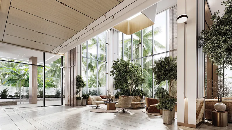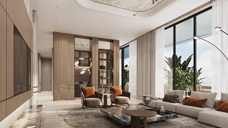 The building's façade is a masterpiece that mirrors the motion of the sea over smooth lines and chic forms. The outside design draws stimulus from island wind designs, mixing living shapes with modern edifice. Interiors are similarly inspiring, showcasing natural supplies like travertine, raised stone, and finish wood panels that improve the modern living experience. With German uses, custom cabinetry, and kindly made spaces, the residences imitate a flawless harmony among aesthetics, luxury, and functionality.