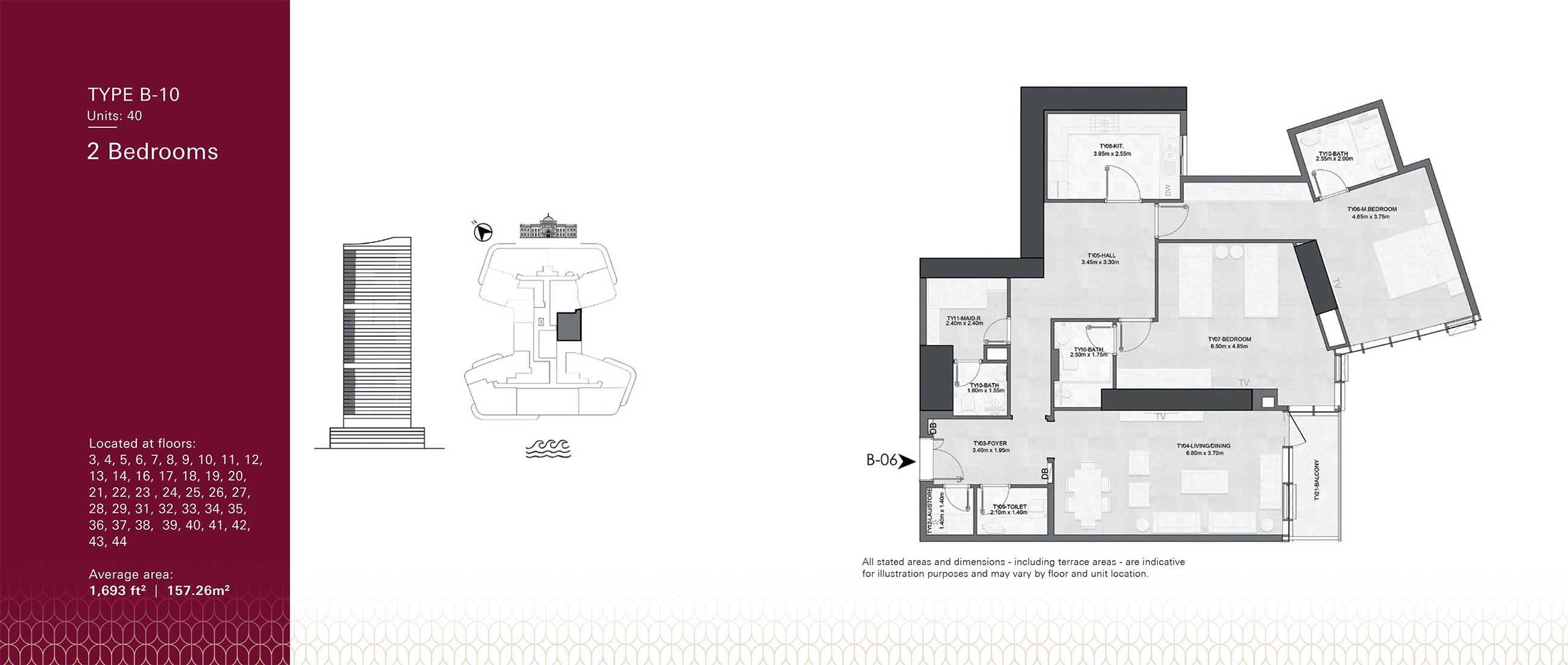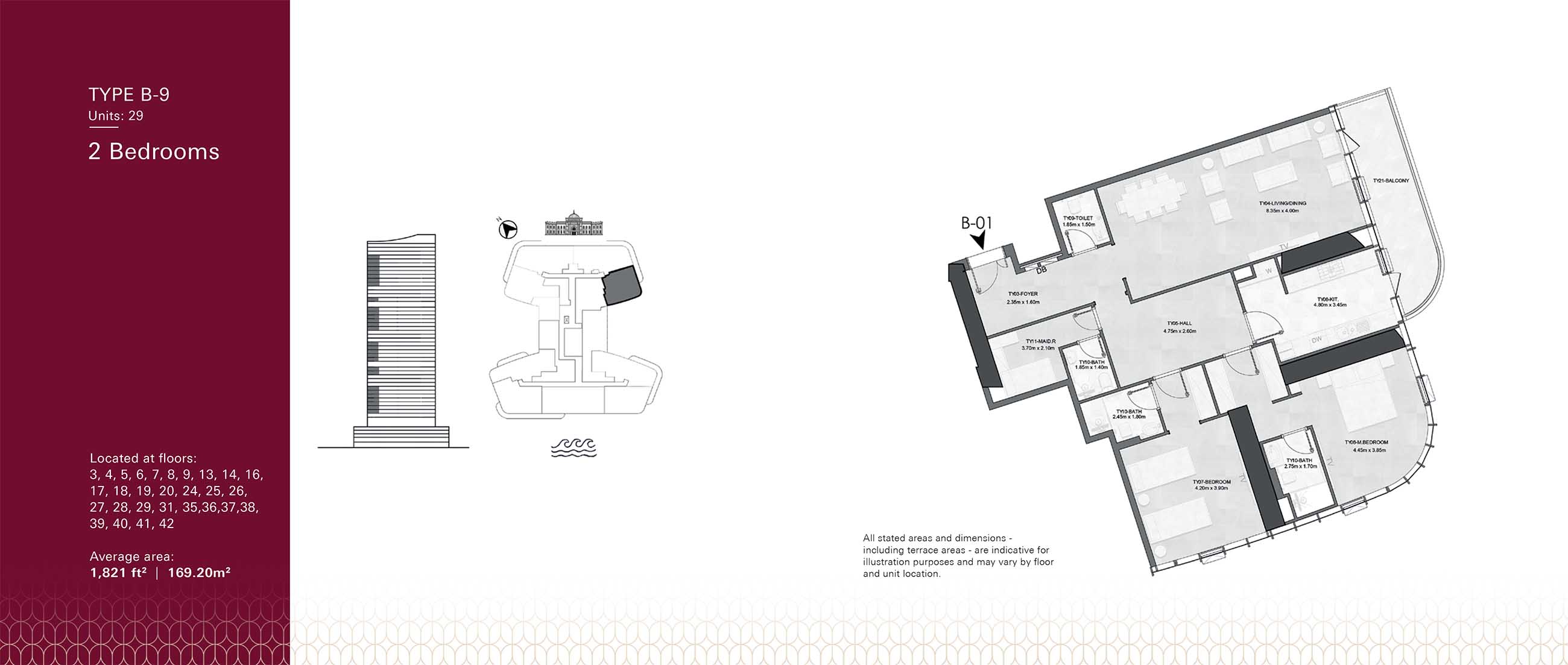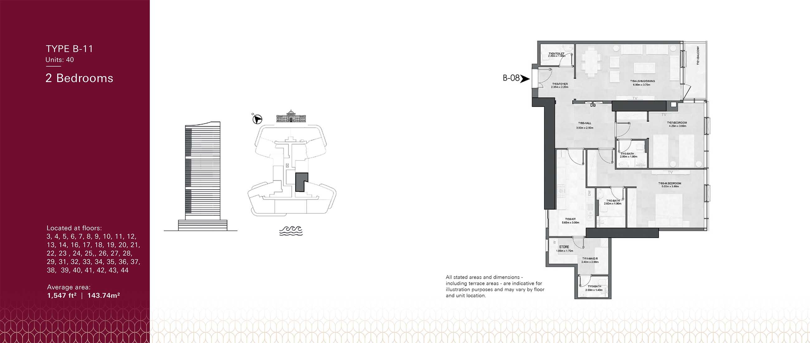 Joud Tower, sited in Al Mamzar Sharjah, kindly planned 2, 3 and 4-bedroom apartments and select 4-bedroom villa duplexes with ultra-modern 5-bedroom penthouses. Every residence is designed for space and comfort and boasts large living spaces, open kitchens, spacious bedrooms and built-in terraces with private water views.