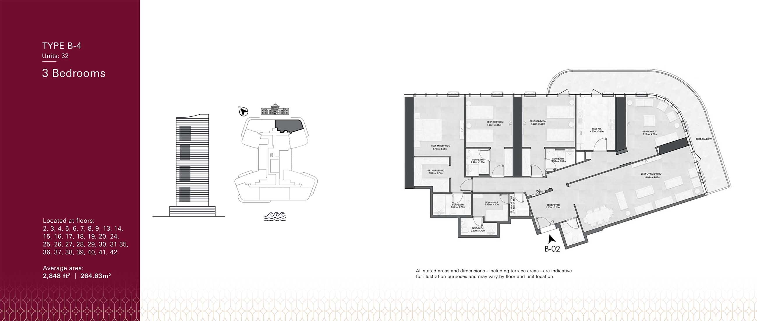 The four-bedroom villa duplex format is spread across two full floors and provides ample space for privacy and lifestyle needs of families. Each plan integrates contemporary features with stately living so that occupants are provided with the perfect mix of taste, comfort and sweeping waterfront vistas.