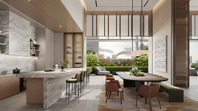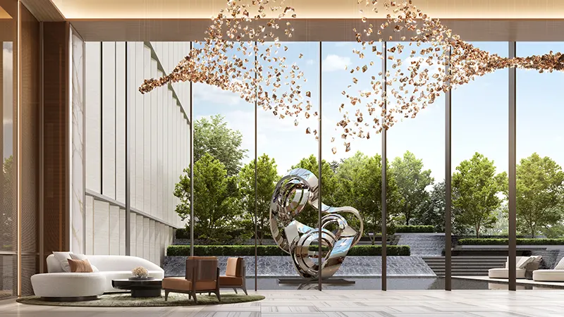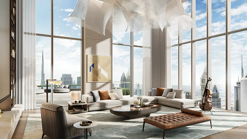 - Panoramic views of Downtown Dubai, the sea and the nearby landscape from expansive floor-to-ceiling windows.