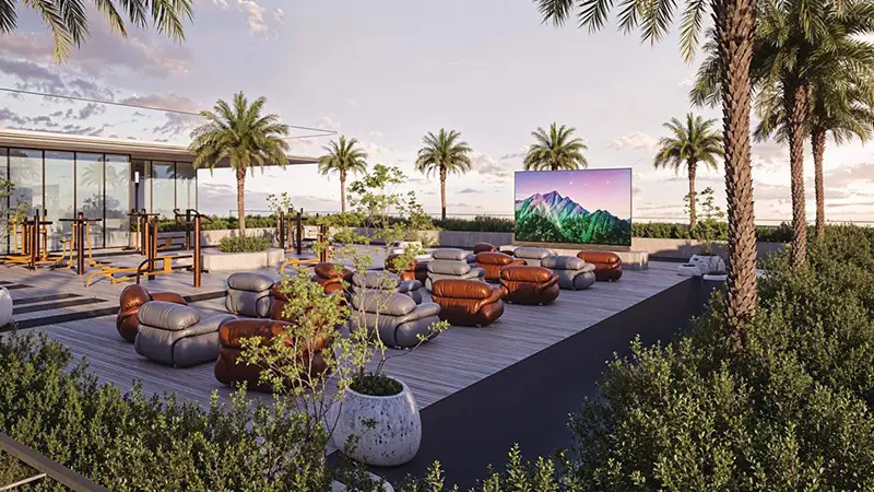 In addition to its impeccable interiors, this development presents a comprehensive suite of world-class amenities that enhance daily living. Each residence boasts its own private swimming pool, while the community features a leisure pool, jacuzzi, and dedicated steam and sauna rooms. Residents can unwind in the lush green gardens, enjoy the soothing fountains, or entertain guests in the specially designed barbecue area. For an added touch of luxury, the property also includes an outdoor cinema, ideal for relaxing evenings or social gatherings under the stars.