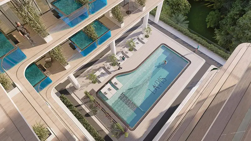 Situated in the highly sought-after district of Majan, Dubai the Lazord by Lapis Properties offers an exclusive 1 to 4-bedroom residences for luxurious living. Featuring a curated selection of these spacious homes, this exceptional development showcases an innovative blend of modern design and expert craftsmanship. The striking architecture, defined by a bold and intricate façade, pairs seamlessly with interiors crafted to perfection. High-end finishes, superior fixtures, and tasteful furnishings ensure that every corner of these homes exudes elegance, offering a refined and tranquil living environment.