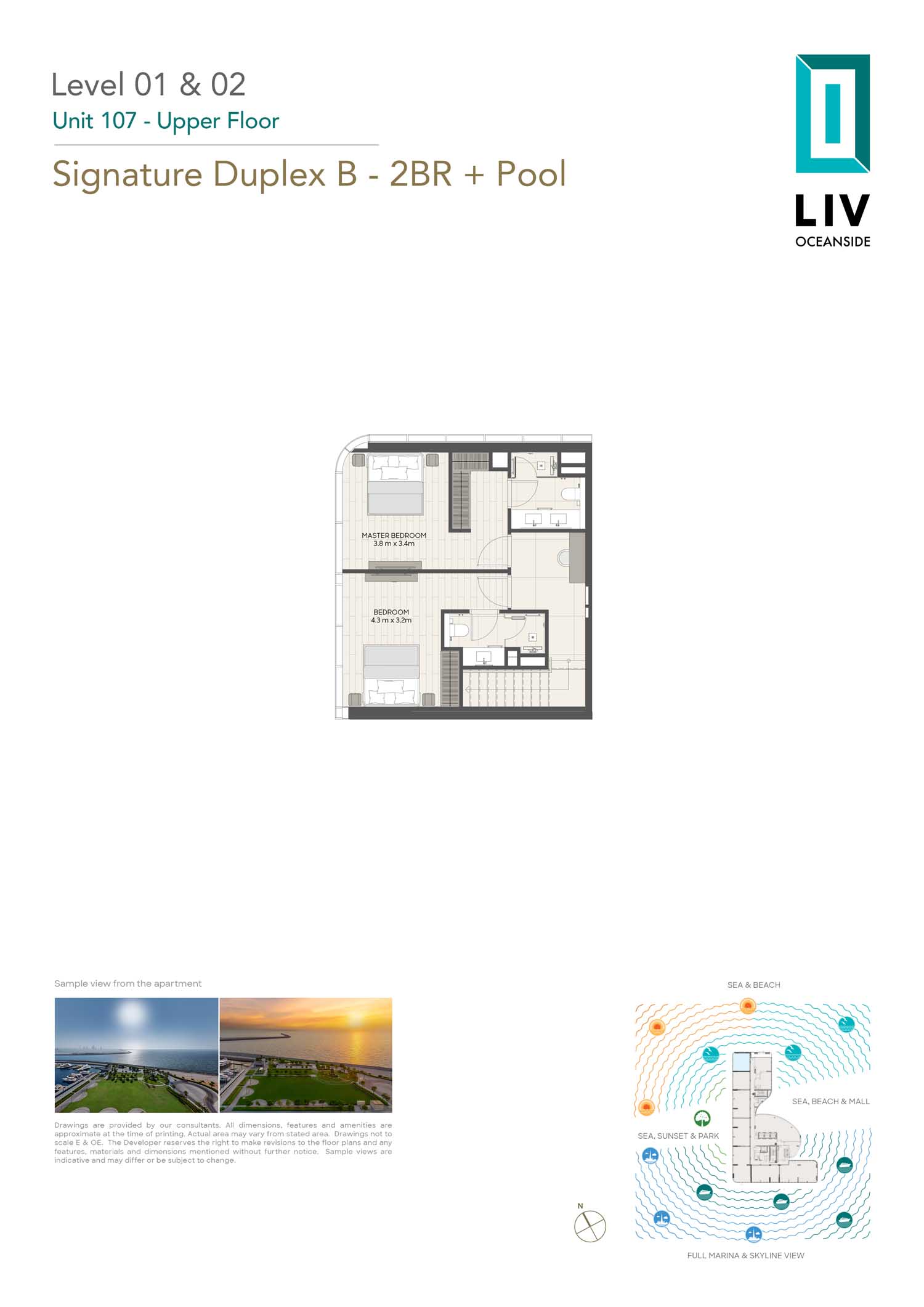 | Level 01 & 02 | 2 Bedroom + Pool | Unit 107 Upper Floor (Signature Duplex B 2BR) | 2860.29 Sq Ft | Apartments |