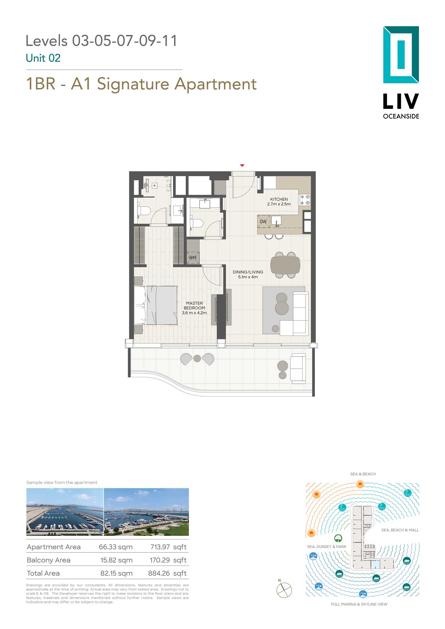 | Level 04 - 12 | 1 Bedroom | Unit 02 (1BR - A1 Signature Apartment) | 884.26 Sq Ft | Apartments |