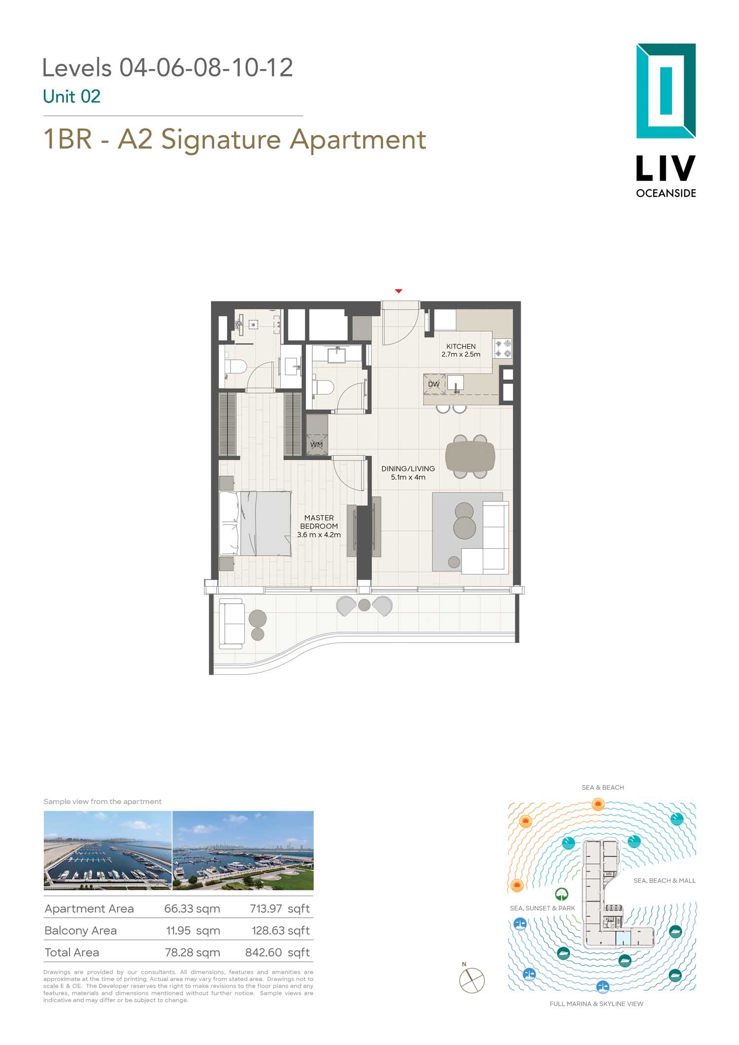 | Level 04 - 12 | 1 Bedroom | Unit 02 (1BR - A2 Signature Apartment) | 842.60 Sq Ft | Apartments |