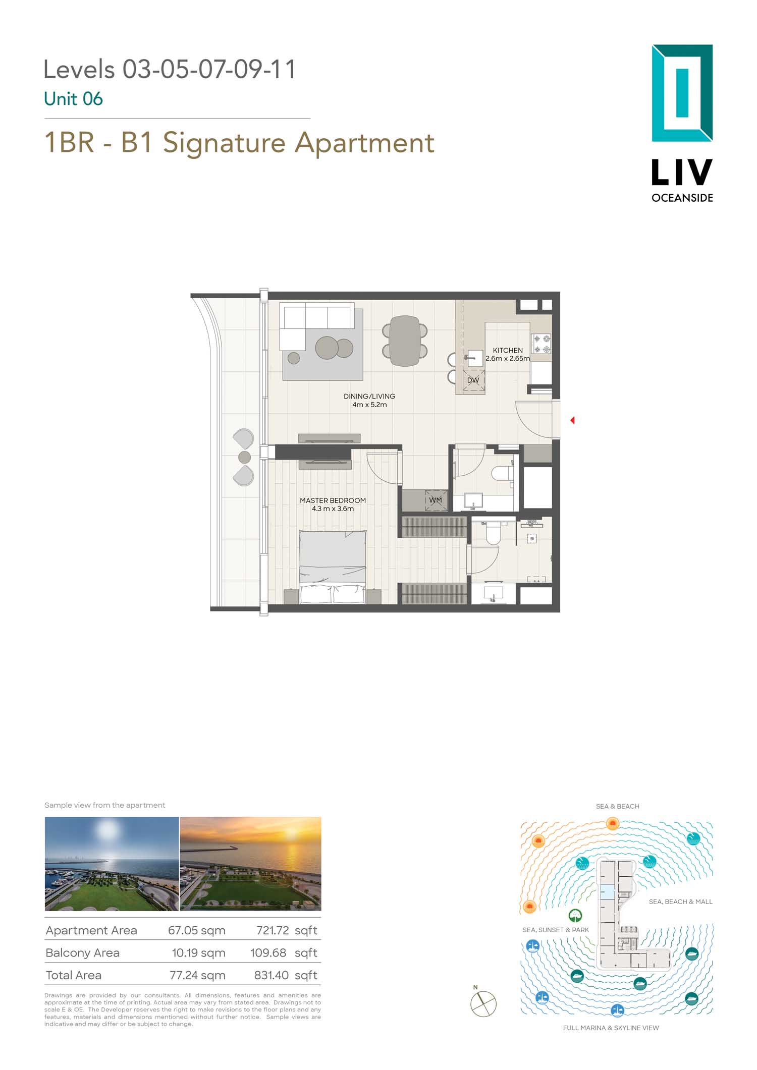 | Level 04 - 12 | 1 Bedroom | Unit 06 (1BR - B1 Signature Apartment) | 831.40 Sq Ft | Apartments |