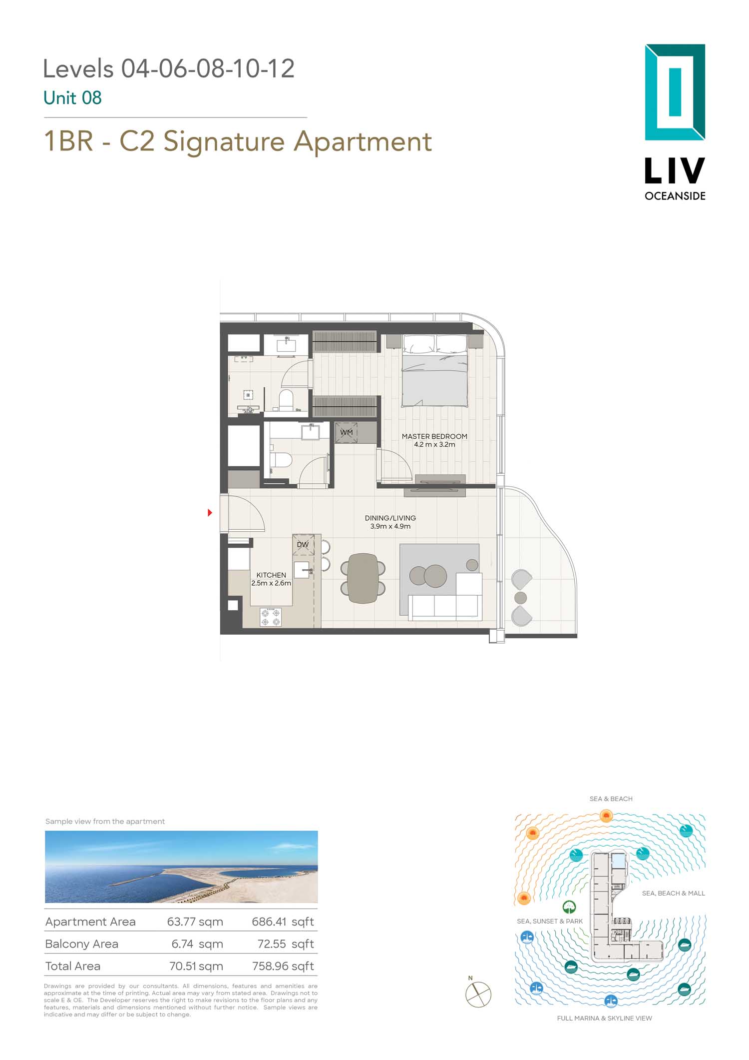 | Level 04 - 12 | 1 Bedroom | Unit 08 (1BR - C2 Signature Apartment) | 758.96 Sq Ft | Apartments |