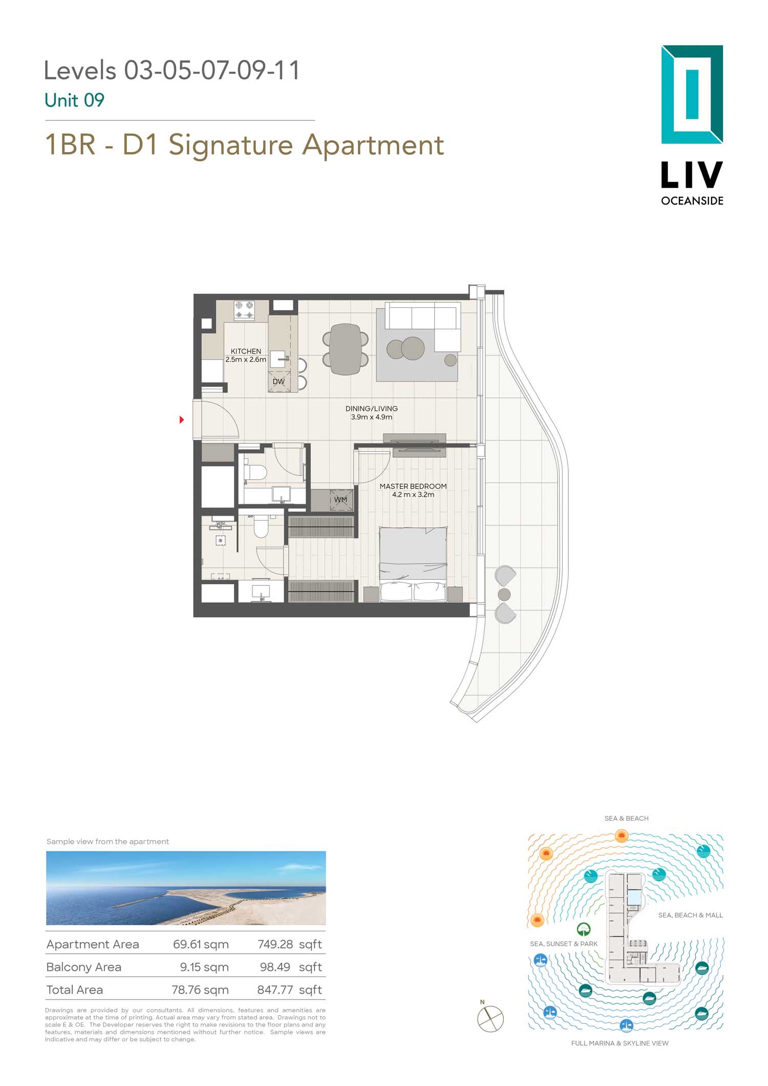 | Level 04 - 12 | 1 Bedroom | Unit 09 (1BR - D1 Signature Apartment) | 847.77 Sq Ft | Apartments |