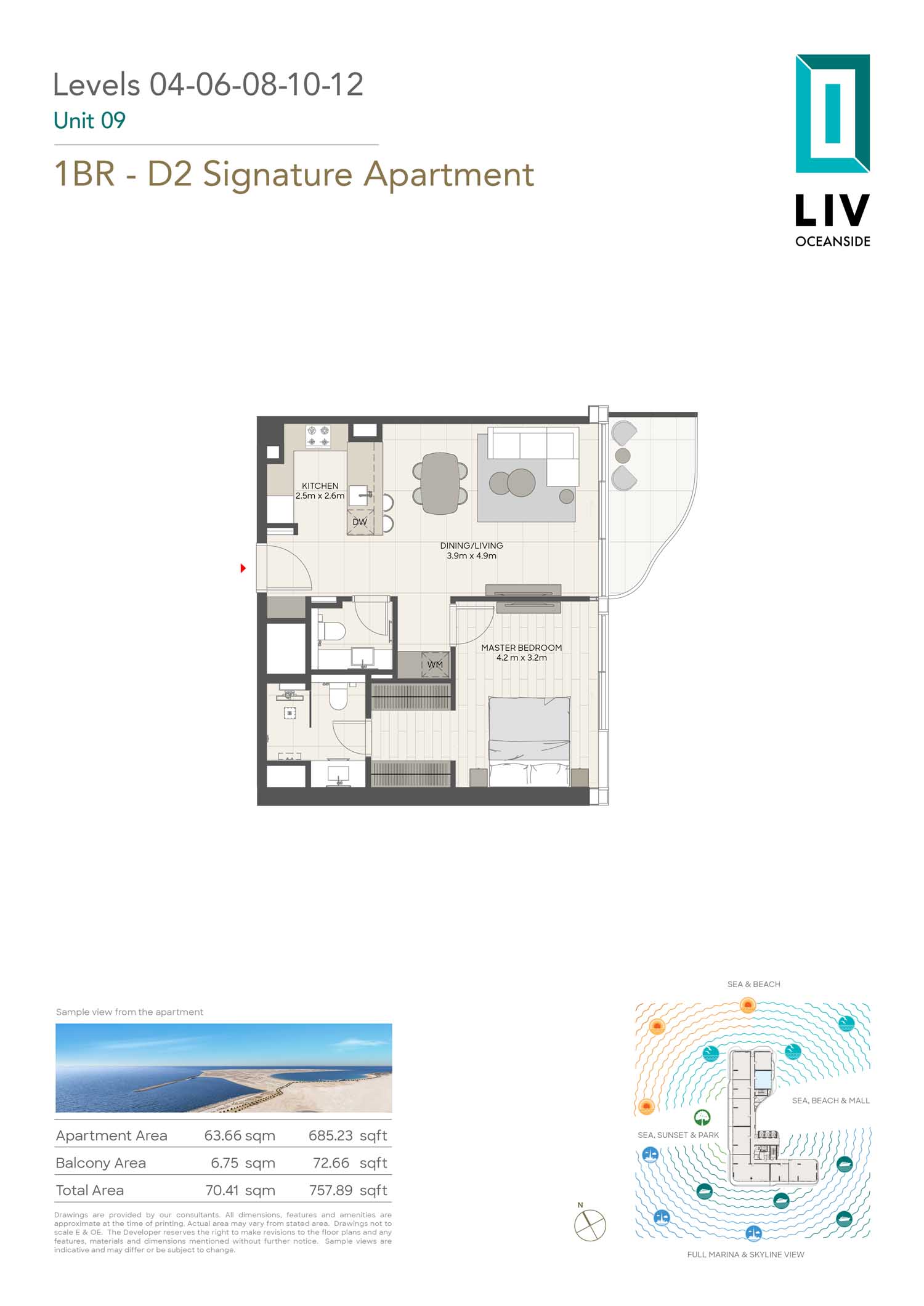 | Level 04 - 12 | 1 Bedroom | Unit 09 (1BR - D2 Signature Apartment) | 757.89 Sq Ft | Apartments |