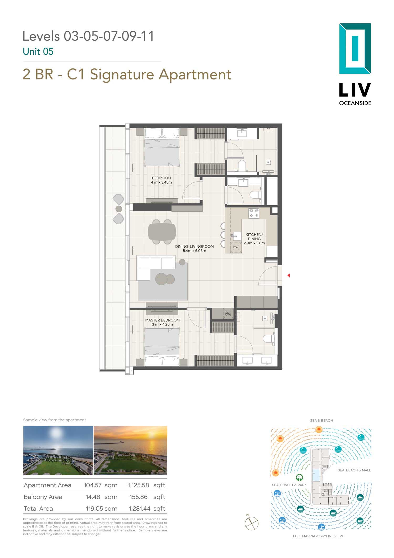 | Level 04 - 12 | 2 Bedrooms | Unit 05 (2BR C1 - Signature Apartment) | 1281.44 Sq Ft | Apartments |