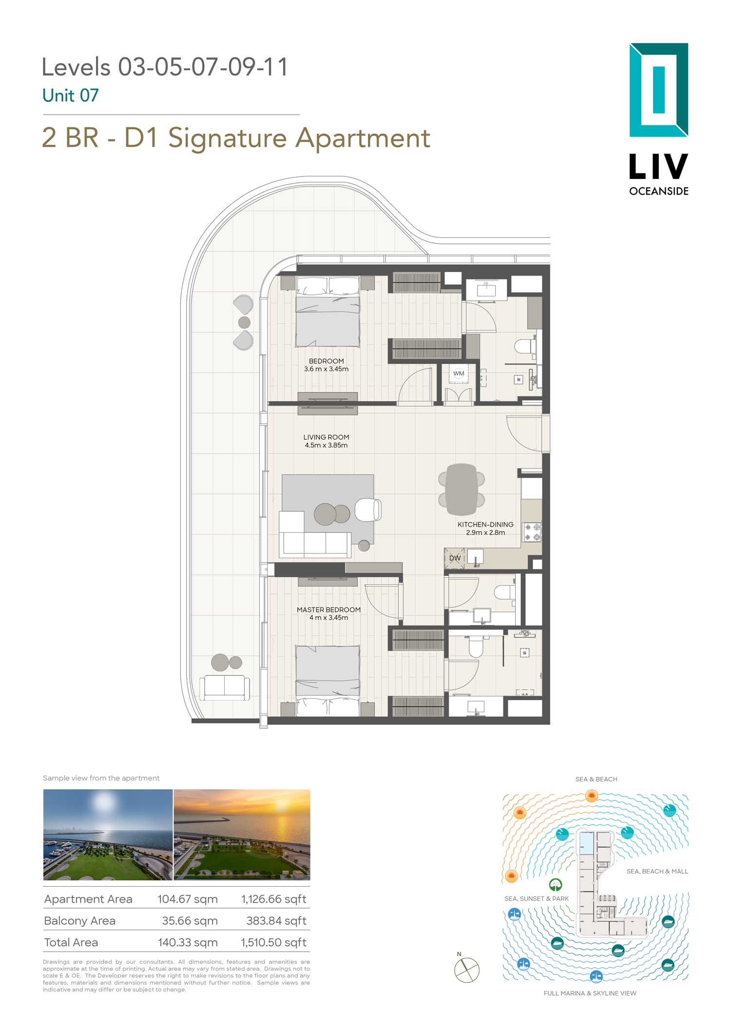 | Level 04 - 12 | 2 Bedrooms | Unit 07 (2BR D1 - Signature Apartment) | 1510.50 Sq Ft | Apartments |