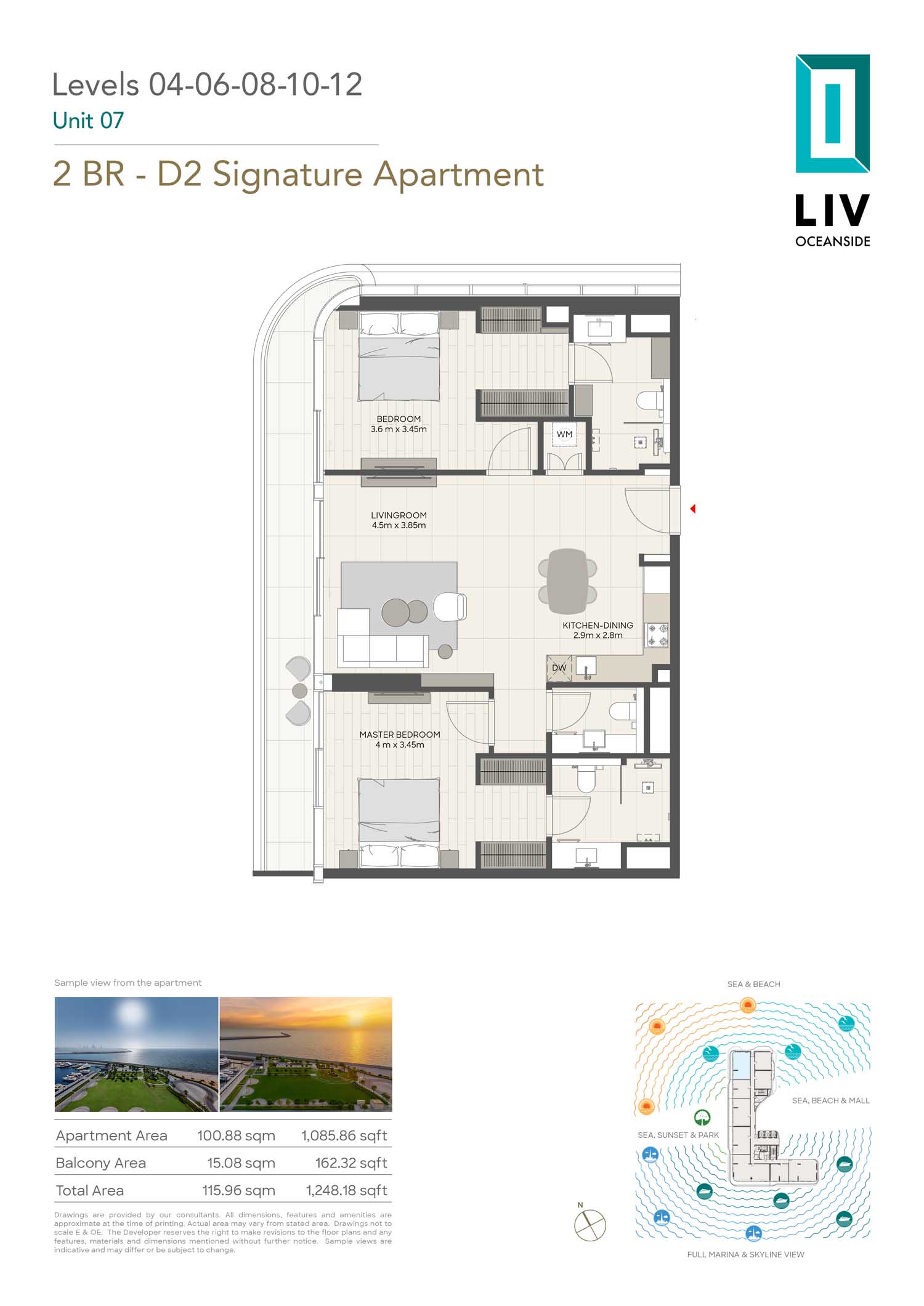 | Level 04 - 12 | 2 Bedrooms | Unit 07 (2BR D2 - Signature Apartment) | 1248.18 Sq Ft | Apartments |