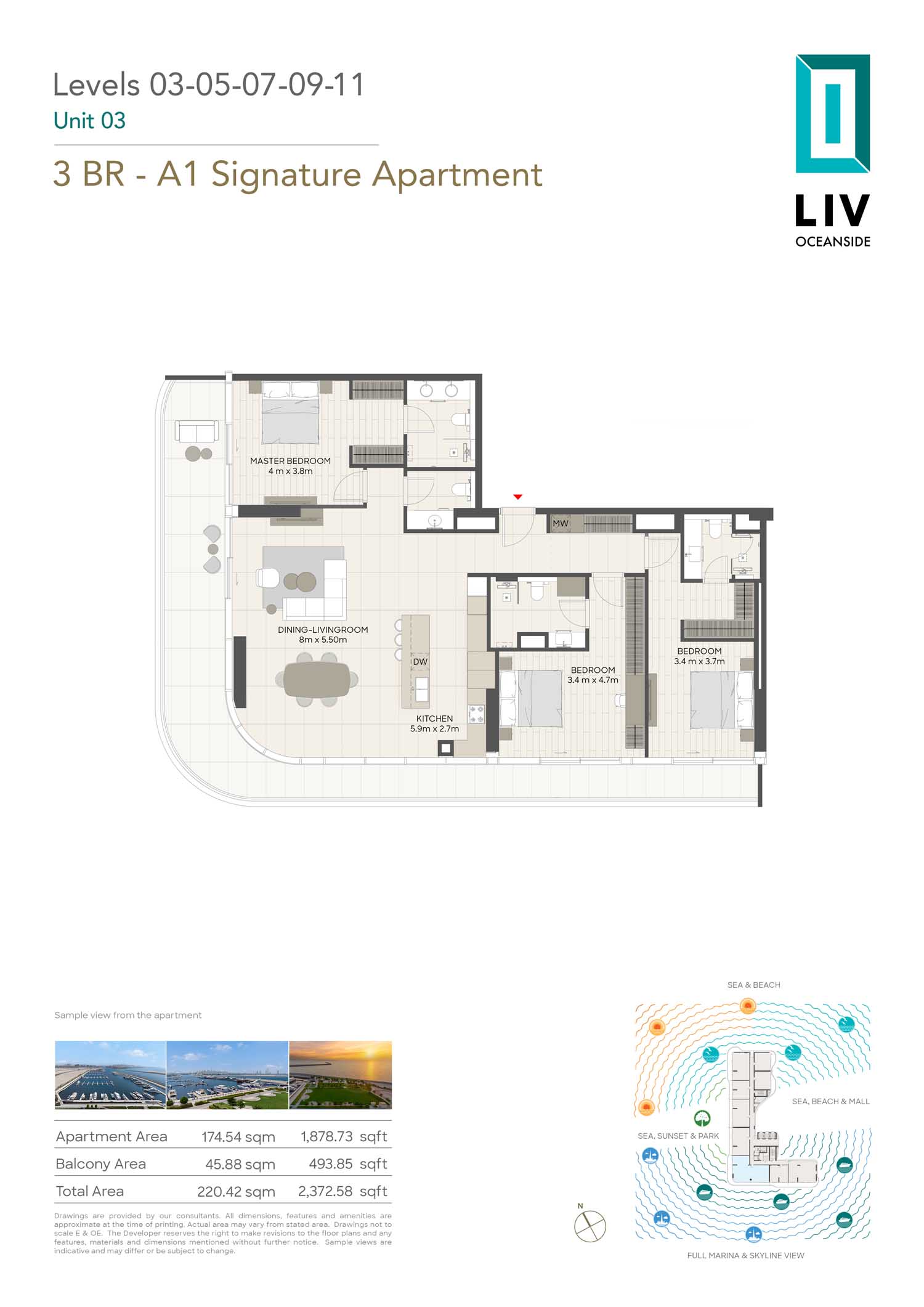 | Level 04 - 12 | 3 Bedrooms | Unit 03 (3BR A1 - Signature Apartment) | 2372.58 Sq Ft | Apartments |
