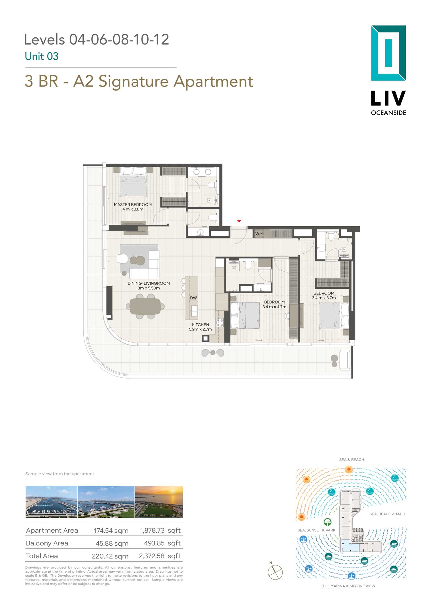 | Level 04 - 12 | 3 Bedrooms | Unit 03 (3BR A2 - Signature Apartment) | 2372.58 Sq Ft | Apartments |