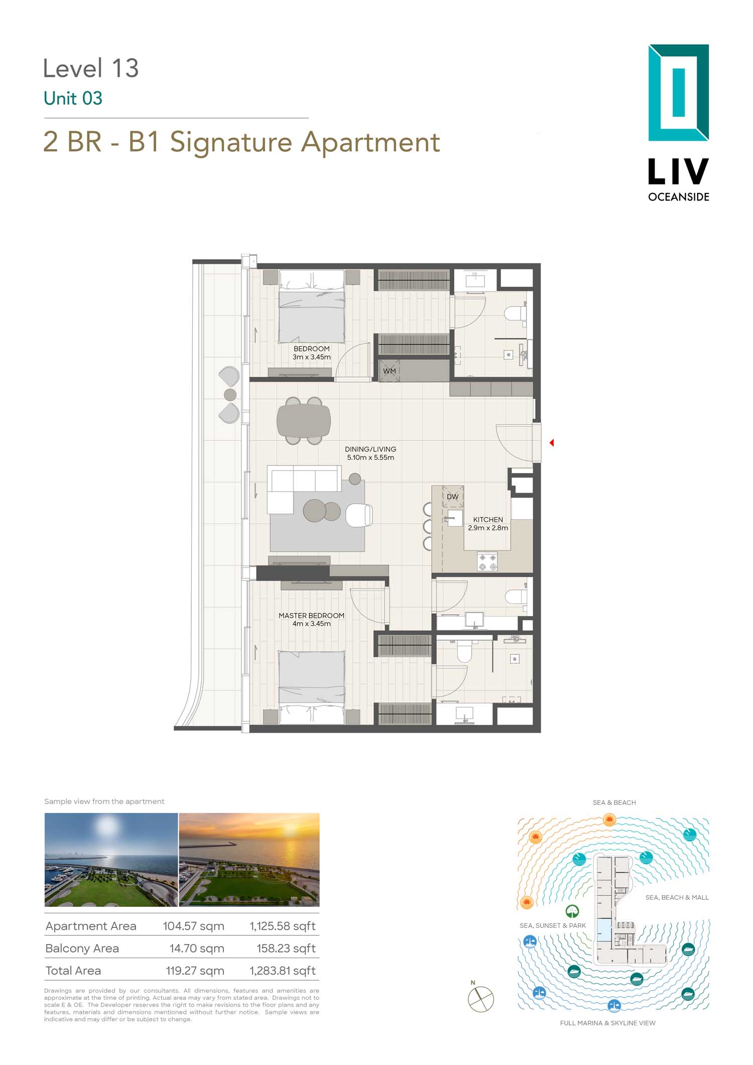 | Level 13 | 2 Bedrooms | Unit 03 (2BR B1 - Signature Apartment) | 1283.81 Sq Ft | Apartments |