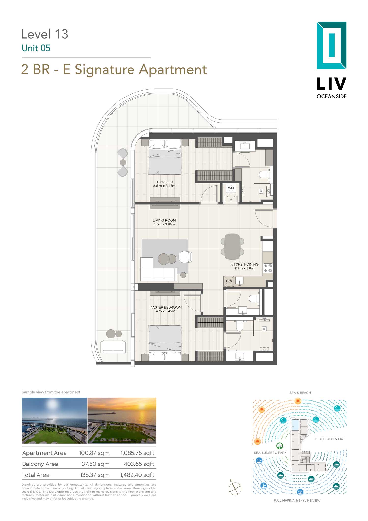 | Level 13 | 2 Bedrooms | Unit 05 (2BR E - Signature Apartment) | 1489.40 Sq Ft | Apartments |