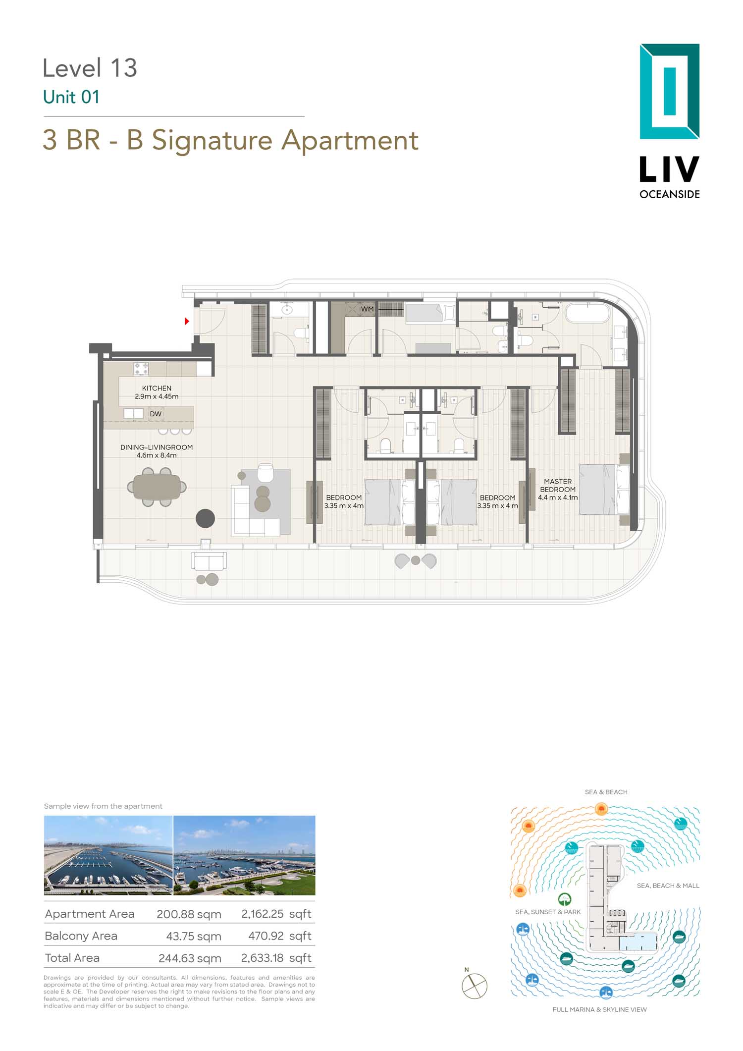 | Level 13 | 3 Bedrooms | Unit 01 (3BR B - Signature Apartment) | 2633.18 Sq Ft | Apartments |