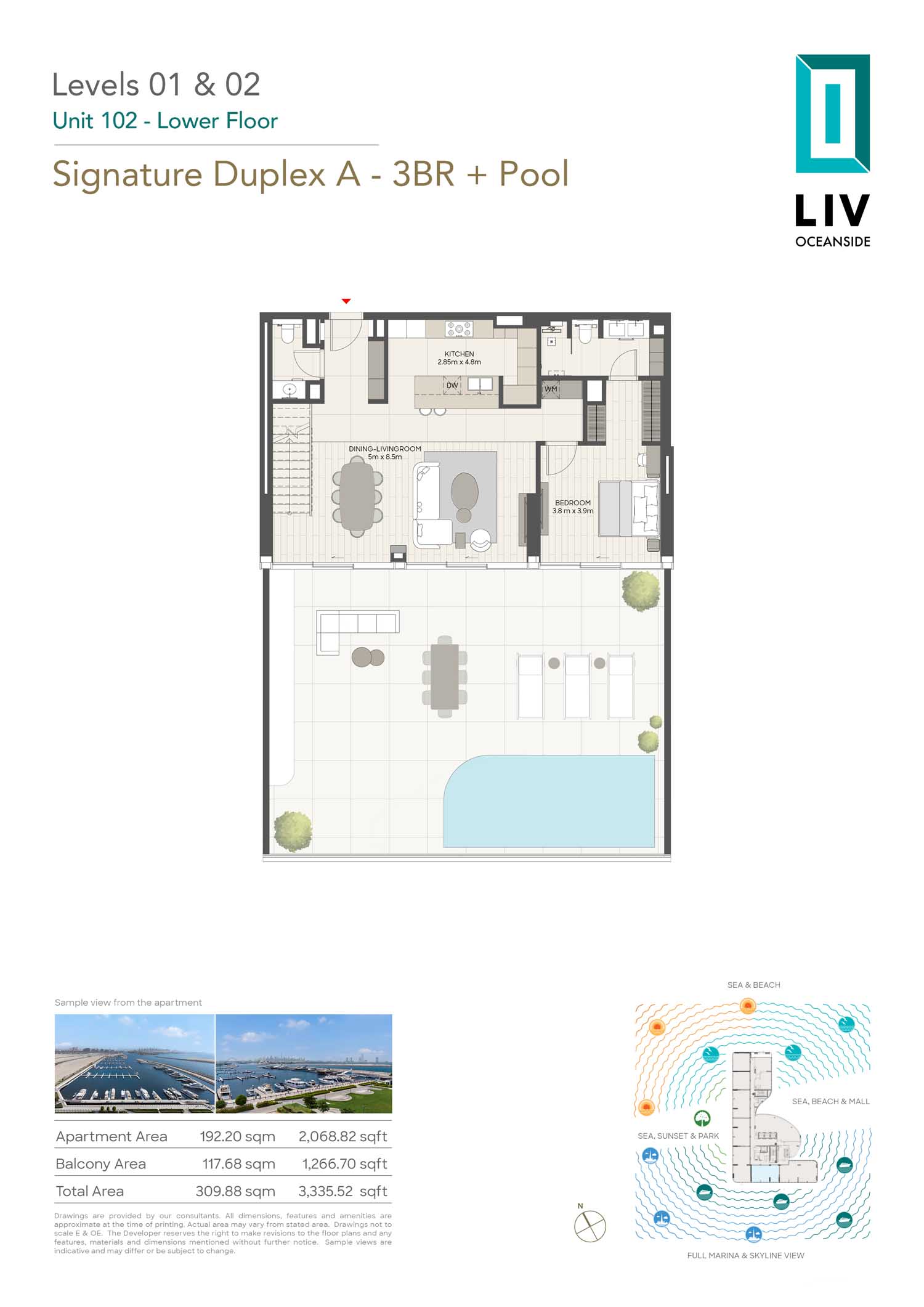 | Levels 01 & 02 | 3 Bedroom + Pool | Unit 102-Lower Floor (Signature Duplex A) | 3335.52 Sq Ft | Duplex Apartments |