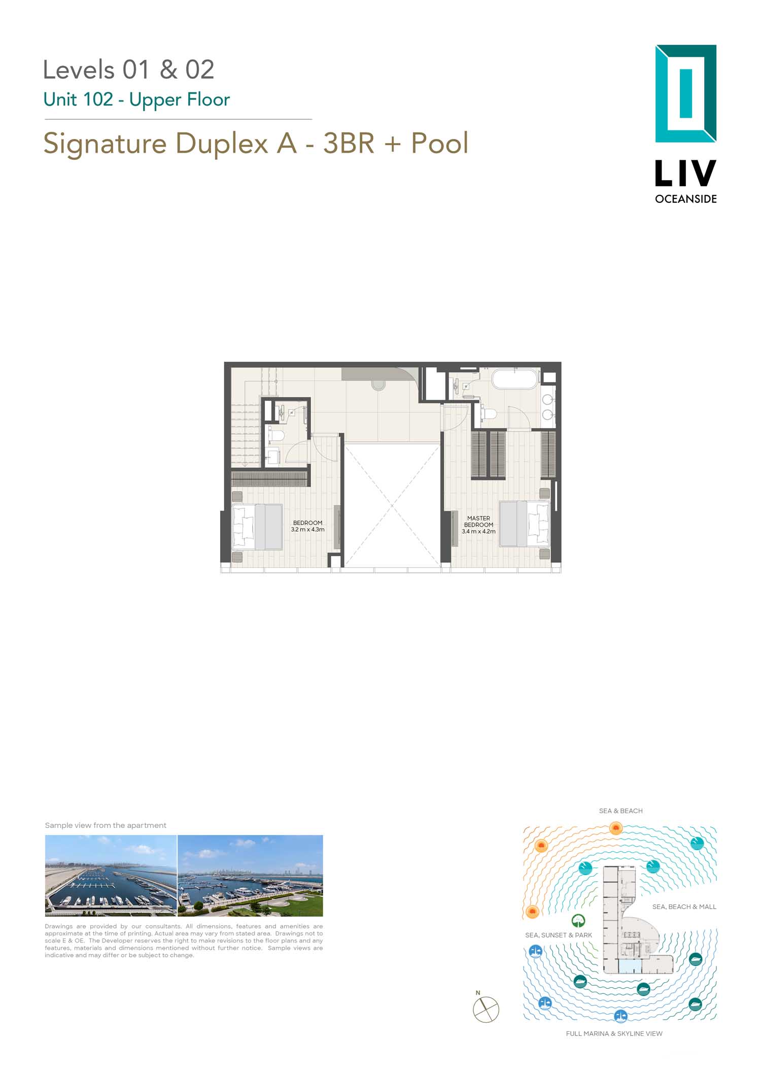 | Levels 01 & 02 | 3 Bedroom + Pool | Unit 102-Upper Floor (Signature Duplex A) | 3335.52 Sq Ft | Duplex Apartments |