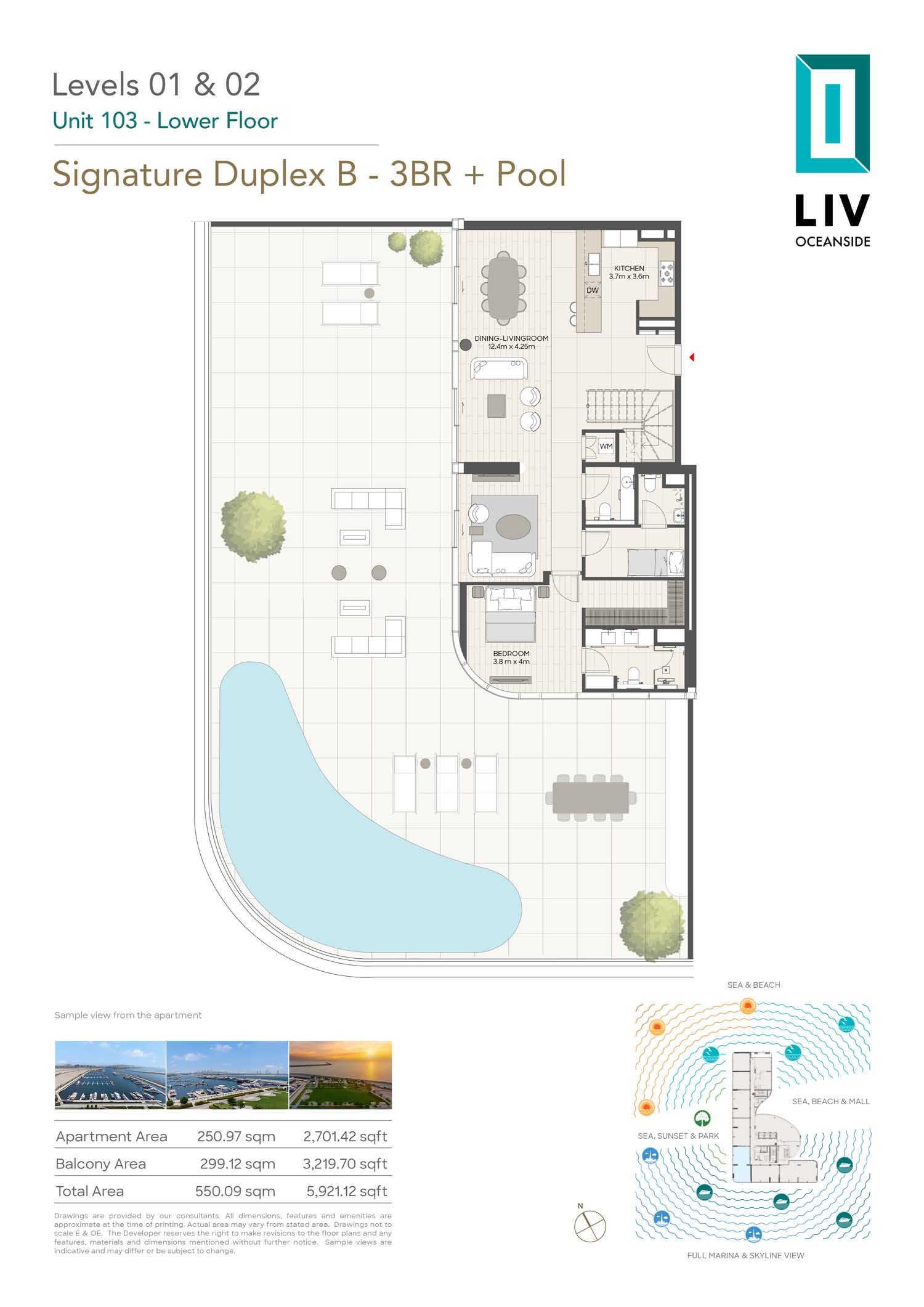 | Levels 01 & 02 | 3 Bedroom + Pool | Unit 103-Lower Floor (Signature Duplex B) | 5921.12 Sq Ft | Duplex Apartments |