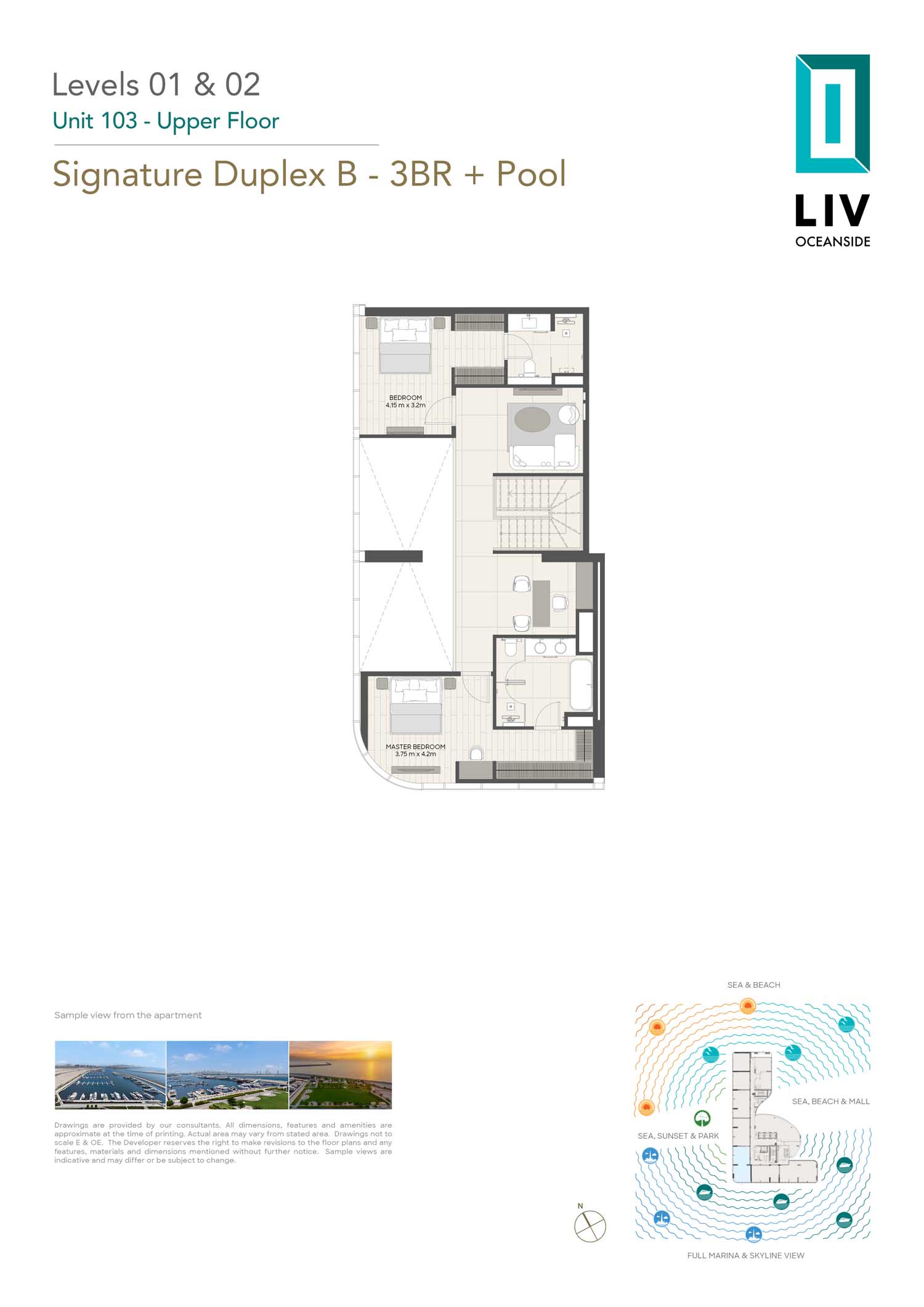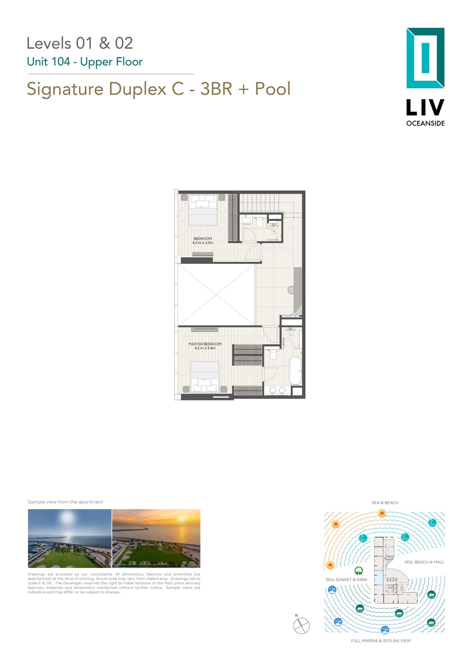 | Levels 01 & 02 | 3 Bedroom + Pool | Unit 104-Upper Floor (Signature Duplex C) | 3267.17 Sq Ft | Duplex Apartments |