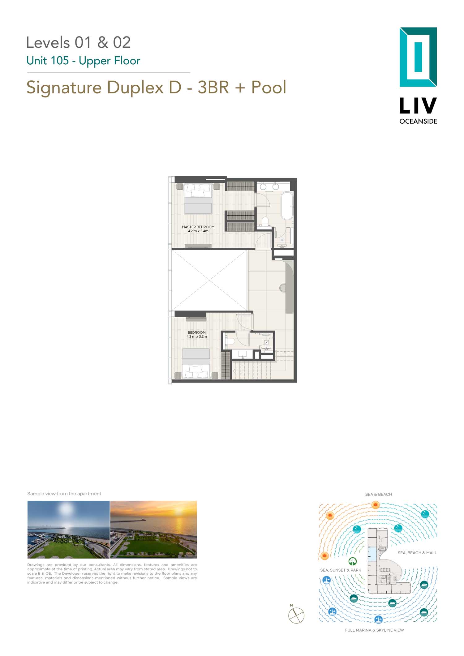 | Levels 01 & 02 | 3 Bedroom + Pool | Unit 105 Upper Floor (Signature Duplex D - 3BR) | 3265.66 Sq Ft | Duplex Apartments |