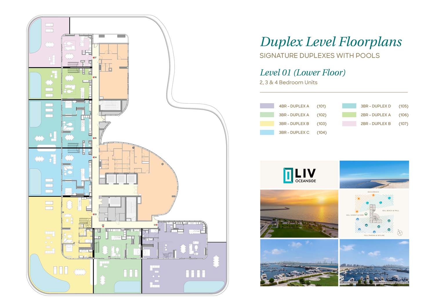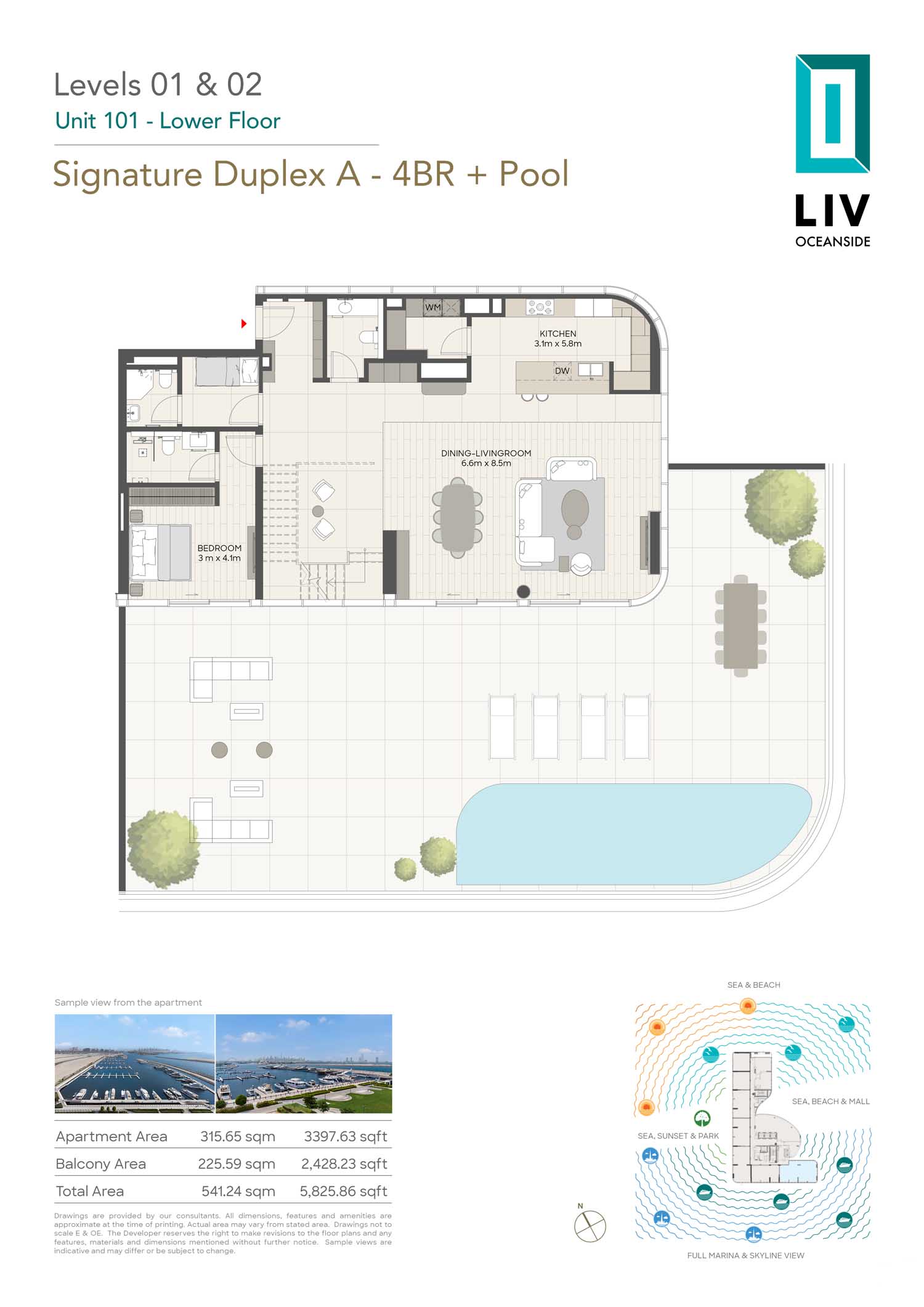 | Levels 01 & 02 | 4 Bedroom + Pool | Unit 101 Lower Floor (Signature Duplex A 4BR) | 5825.86 Sq Ft | Duplex Apartments |