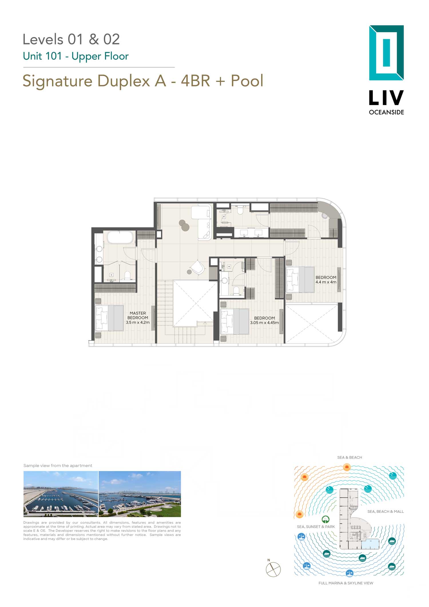 | Levels 01 & 02 | 4 Bedroom + Pool | Unit 101 Upper Floor (Signature Duplex A 4BR) | 5825.86 Sq Ft | Duplex Apartments |