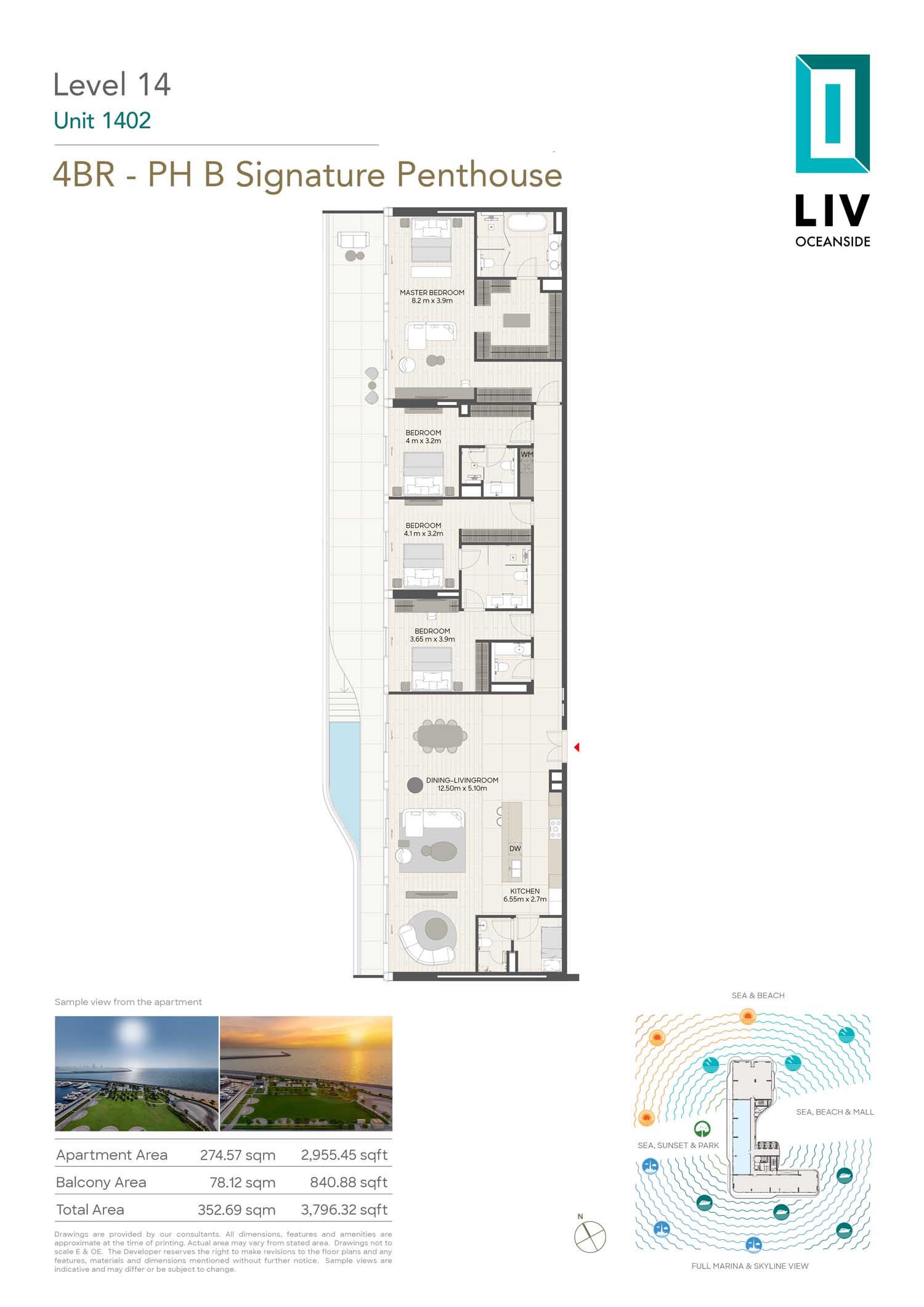 | Level 14 | 4 Bedrooms | Unit 1402 (4BR - PH B Signature Penthouse) | 3796.32 Sq Ft | PentHouses |