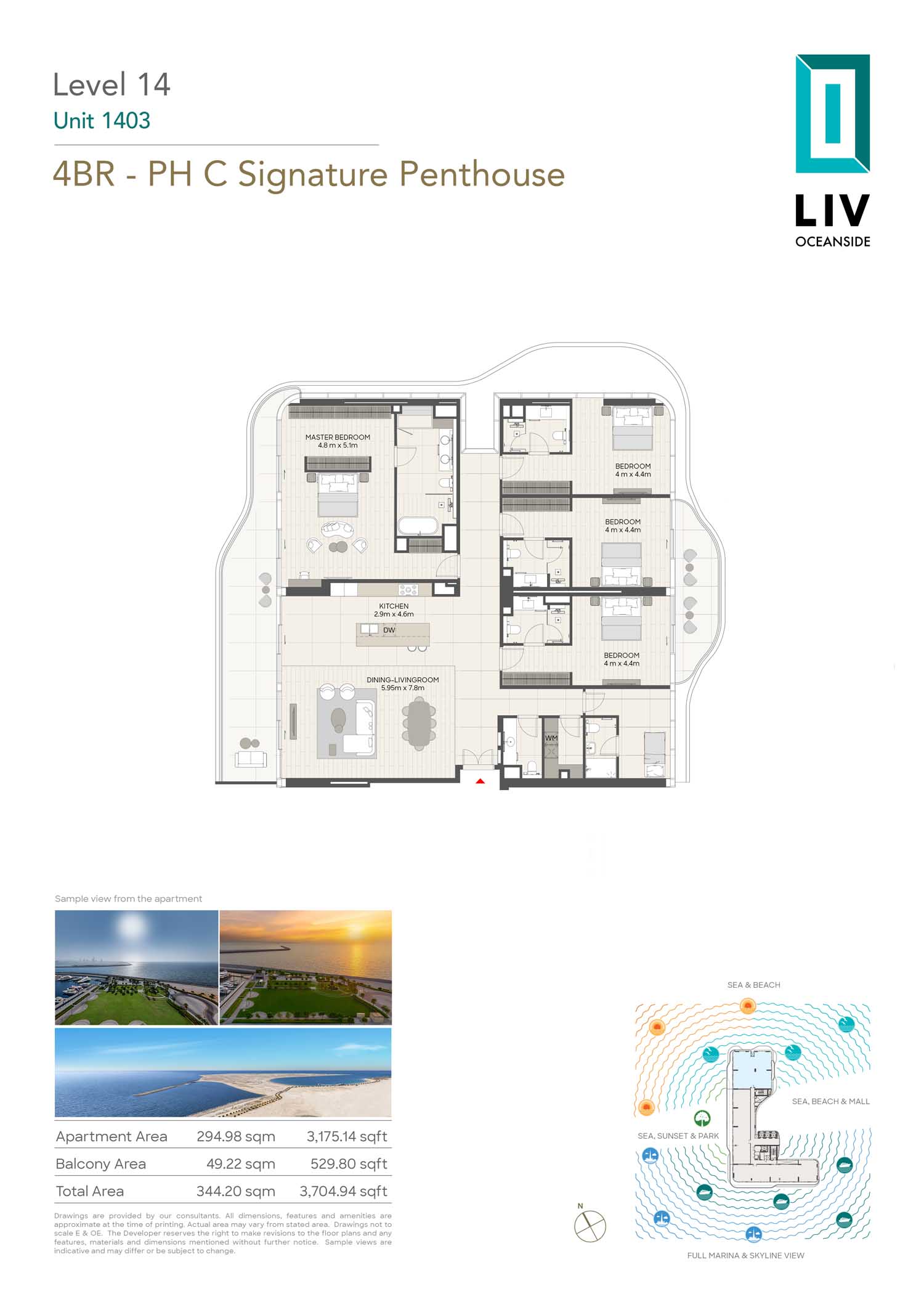 | Level 14 | 4 Bedrooms | Unit 1403 (4BR - PHC Signature Penthouse) | 3704.94 Sq Ft | PentHouses |