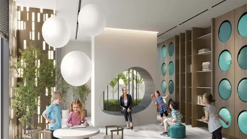 - Premium amenities including a gym, swimming pool, yoga studio, sauna, and children’s play areas.