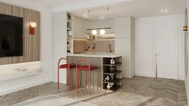 The residences reflect stylish from inside and the designs are modern and airy living spaces are constructed by personalized cabinetry, functional utility rooms, and fully equipped kitchens fitted with high-quality finishes. The expansive floor-to-ceiling windows serve both aesthetic and functional purposes, allowing natural light to flood the interiors while offering breathtaking views of Dubai’s skyline. Each unit is meticulously planned to provide an optimal balance between luxury and practicality, making it an ideal choice for both individuals and families seeking a contemporary, refined urban lifestyle.