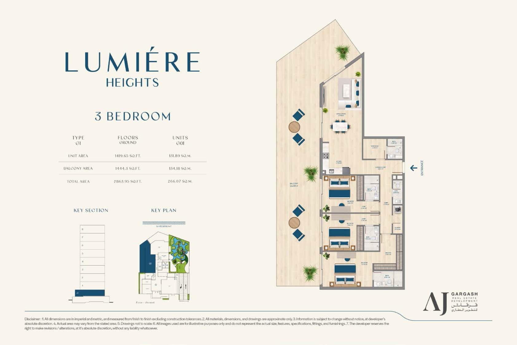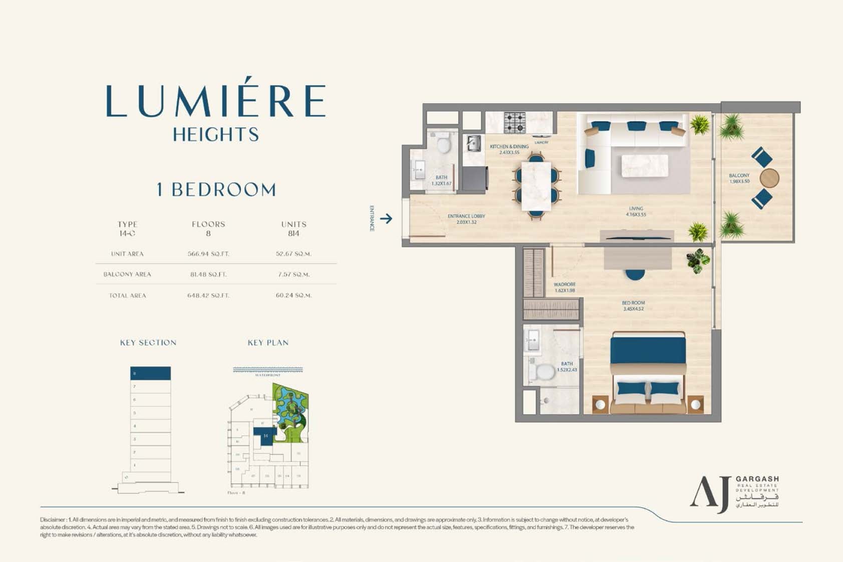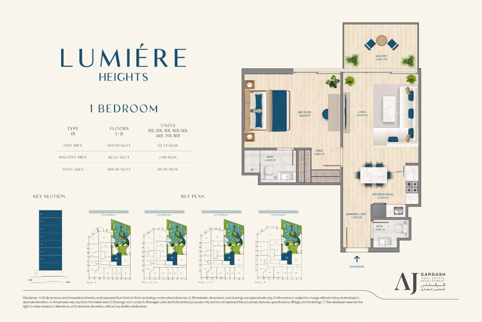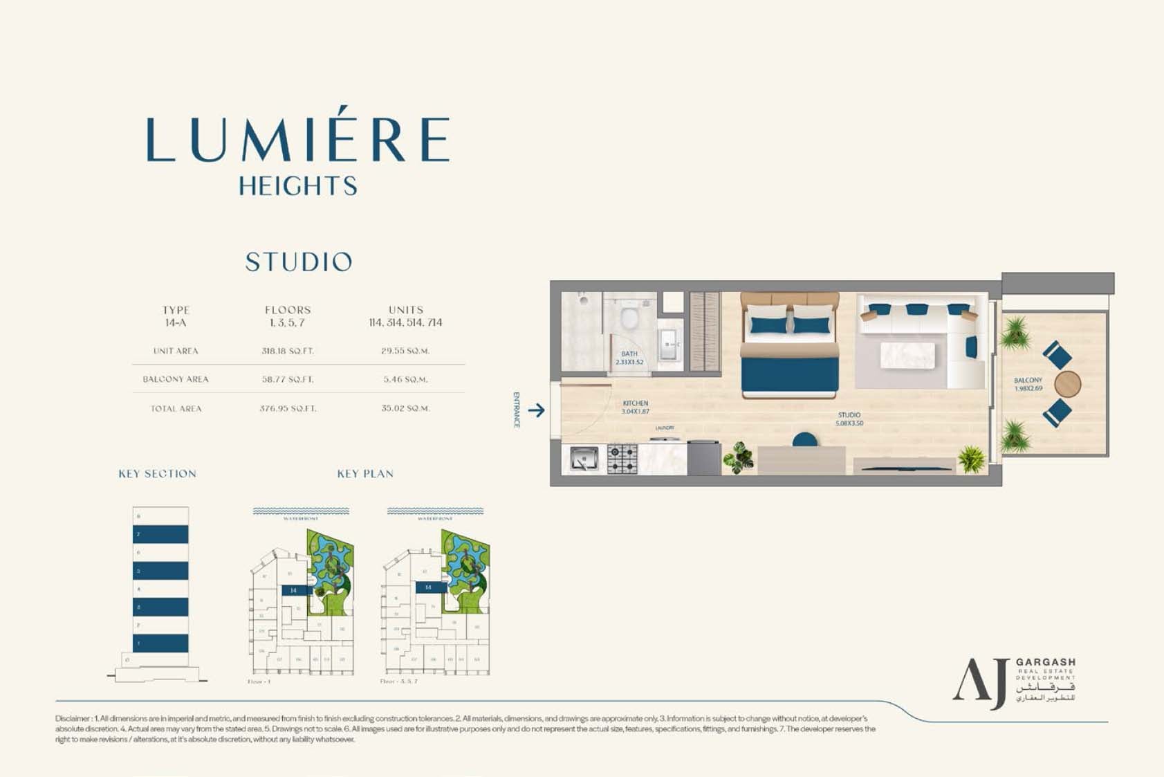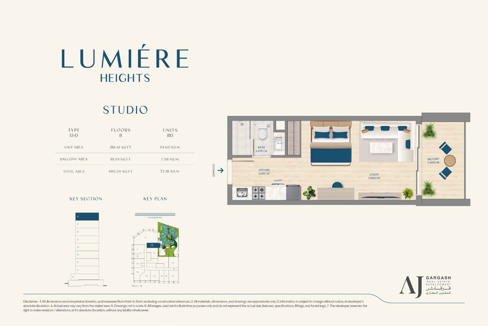 The Lumiere Heights situated at Culture Village Al Jaddaf, offers a diverse range of floor plans including variety of sized apartments. Each residence is crafted with spacious layouts which merges contemporary aesthetics and specious design, ensuring a comfortable living experience. The property features premium finish of Bedrooms, custom designed living area and modern kitchen offers comfort and style in every corner. Residents can enjoy abundant natural light and fresh air accessible through living areas and balcony that enhances daily life. This project redefines modern living in a remarkable way through meticulously designed interiors offering residents an ideal standard of comfort and elegance.