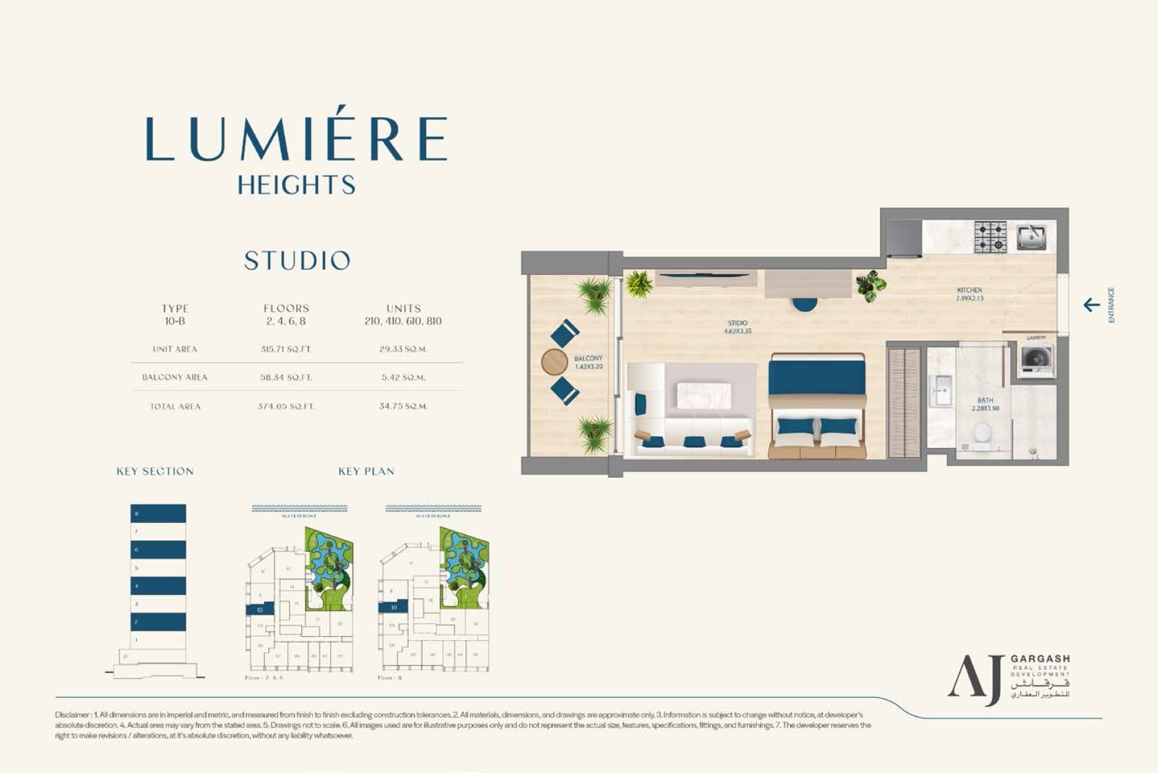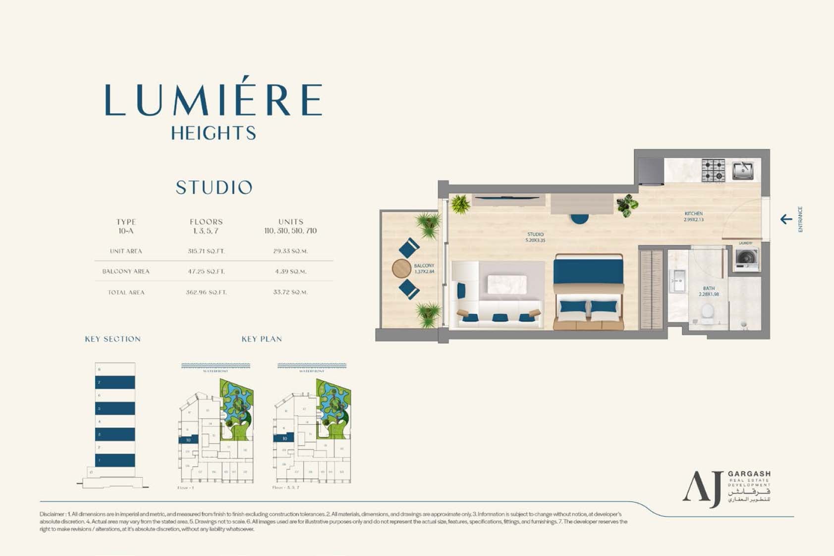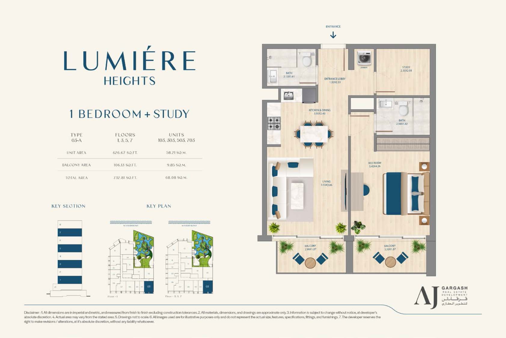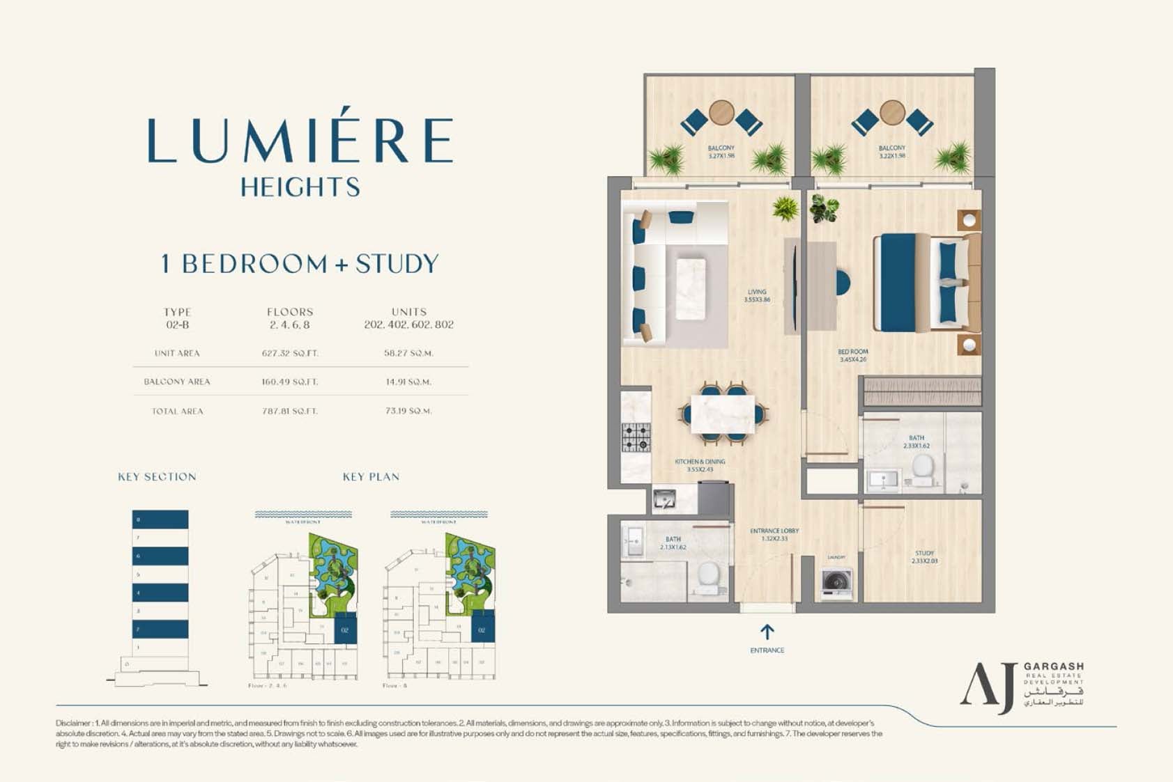 The Lumiere Heights situated at Culture Village Al Jaddaf, offers a diverse range of floor plans including variety of sized apartments. Each residence is crafted with spacious layouts which merges contemporary aesthetics and specious design, ensuring a comfortable living experience. The property features premium finish of Bedrooms, custom designed living area and modern kitchen offers comfort and style in every corner. Residents can enjoy abundant natural light and fresh air accessible through living areas and balcony that enhances daily life. This project redefines modern living in a remarkable way through meticulously designed interiors offering residents an ideal standard of comfort and elegance.