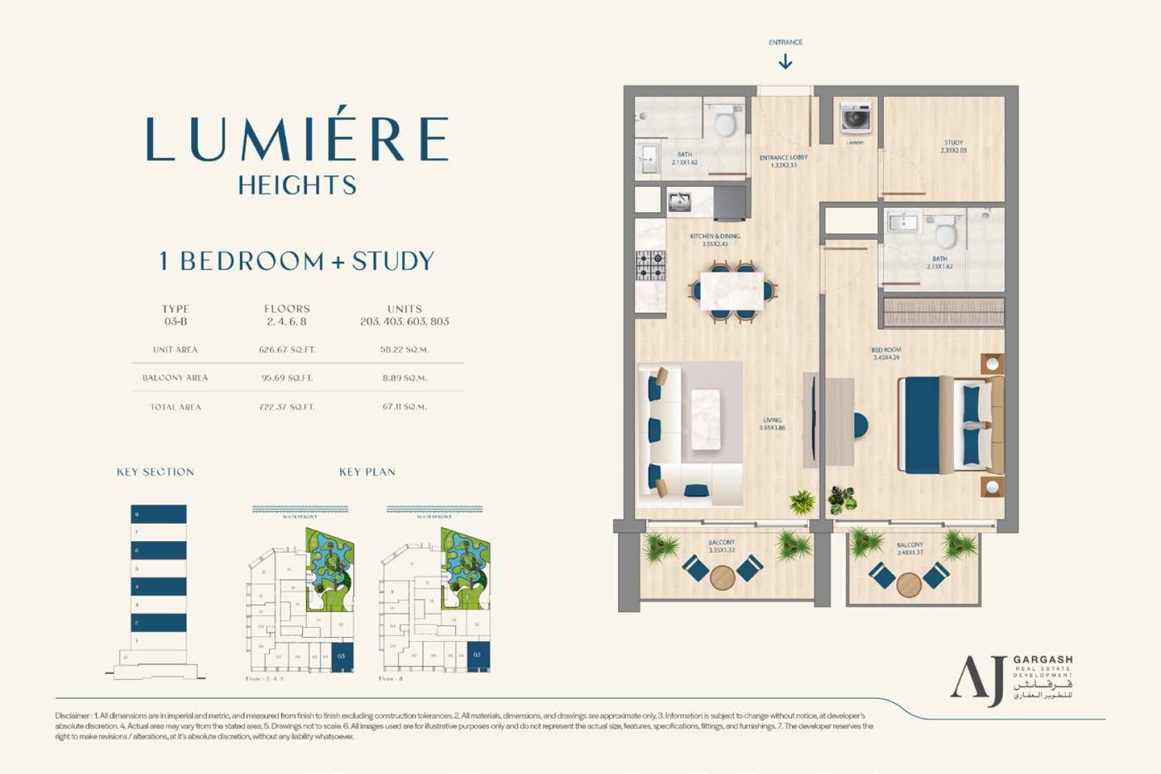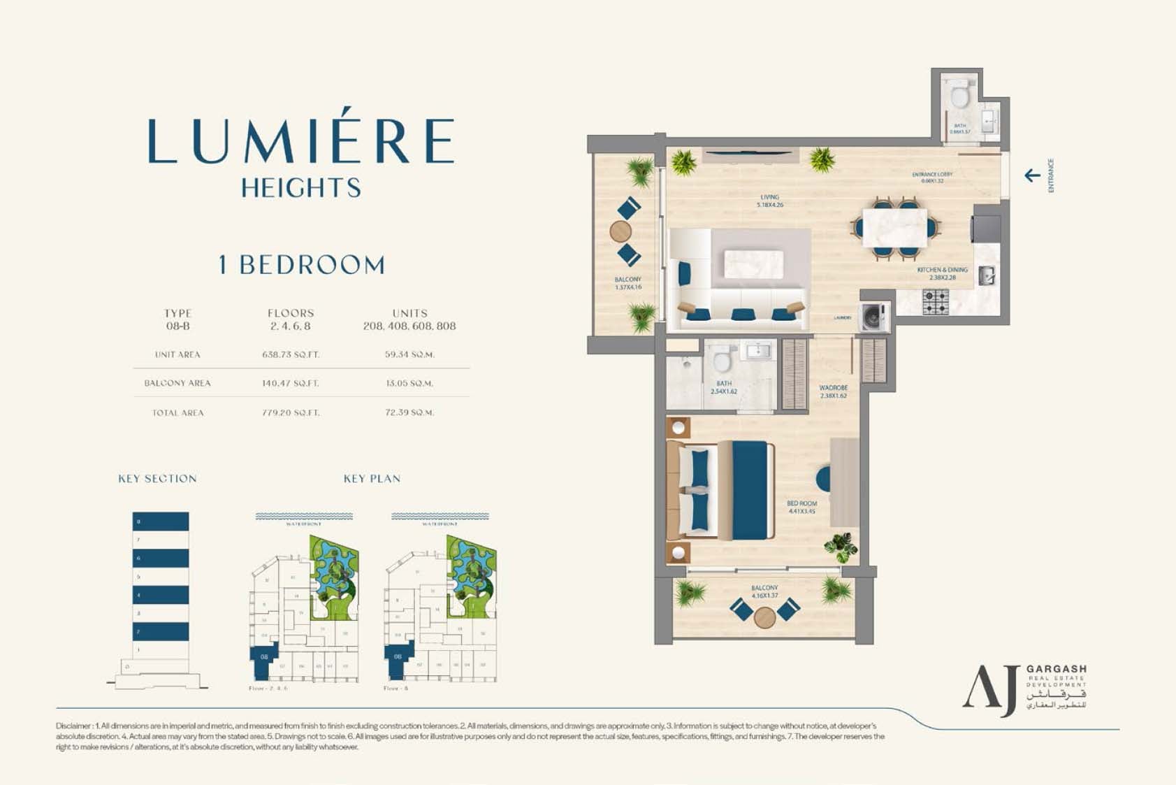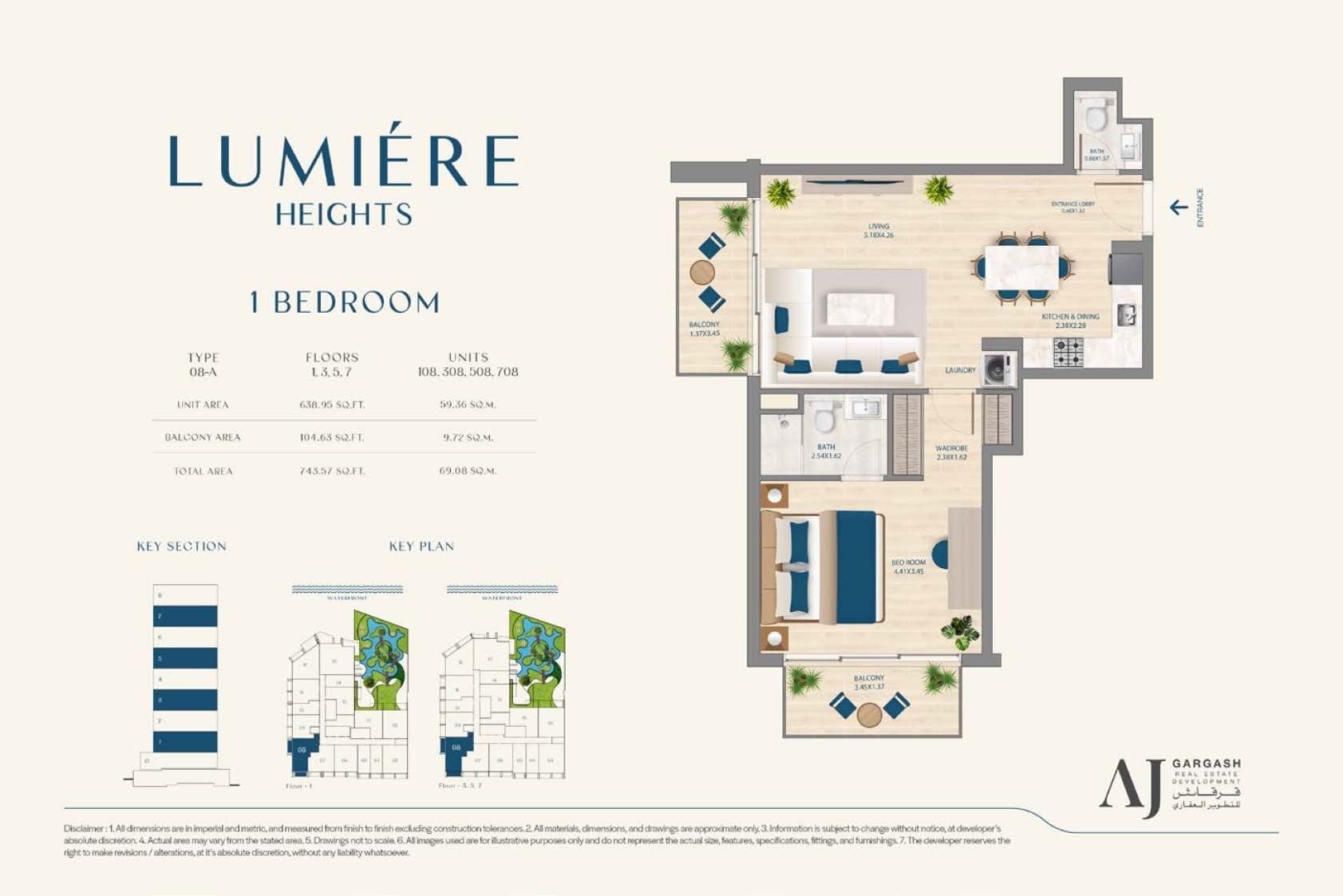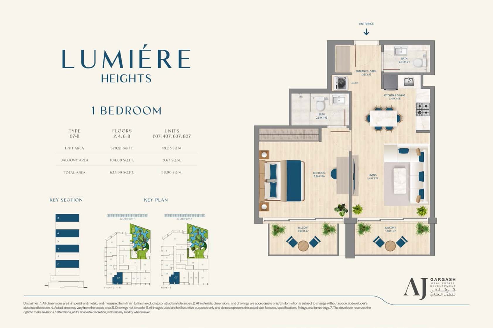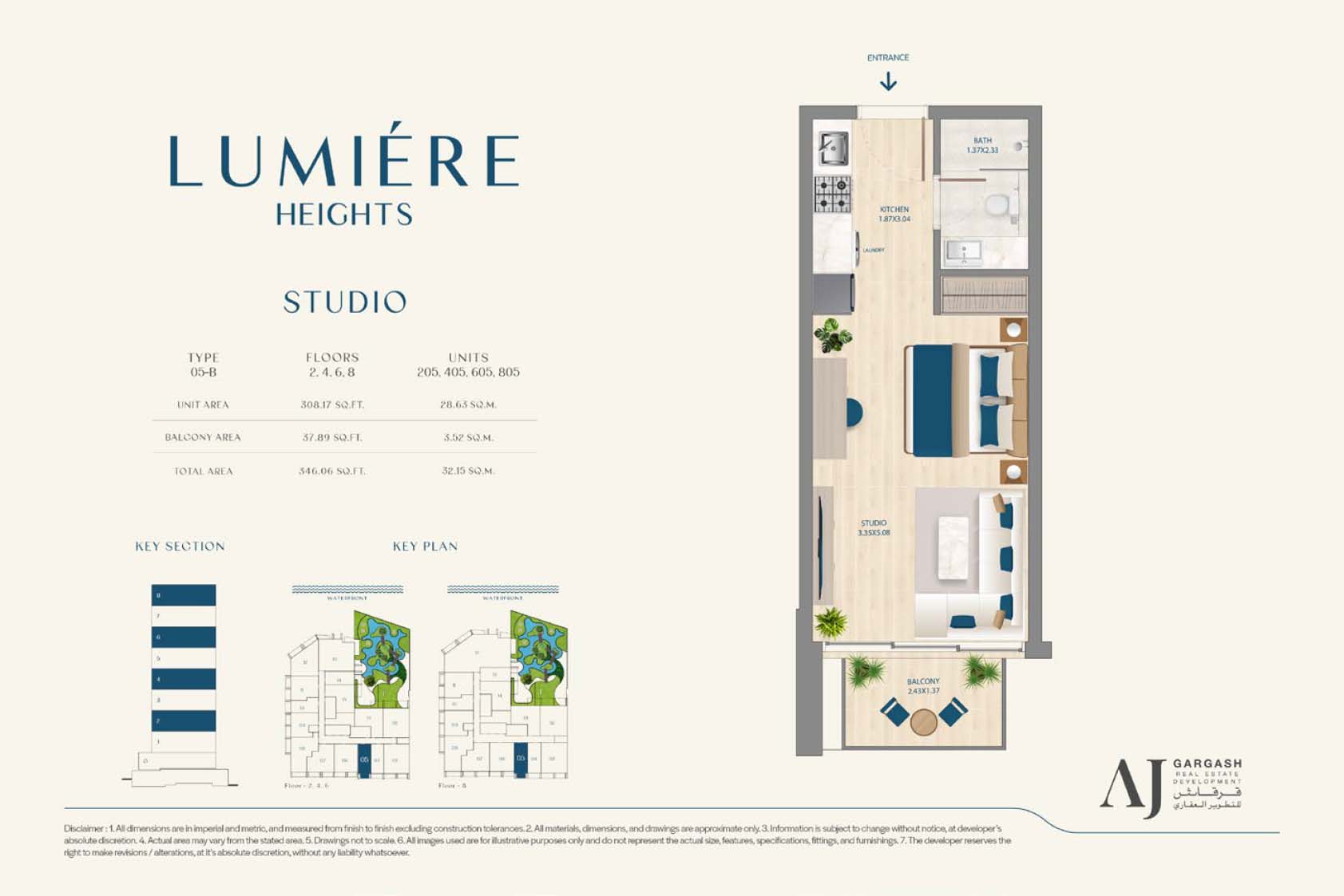 The Lumiere Heights situated at Culture Village Al Jaddaf, offers a diverse range of floor plans including variety of sized apartments. Each residence is crafted with spacious layouts which merges contemporary aesthetics and specious design, ensuring a comfortable living experience. The property features premium finish of Bedrooms, custom designed living area and modern kitchen offers comfort and style in every corner. Residents can enjoy abundant natural light and fresh air accessible through living areas and balcony that enhances daily life. This project redefines modern living in a remarkable way through meticulously designed interiors offering residents an ideal standard of comfort and elegance.