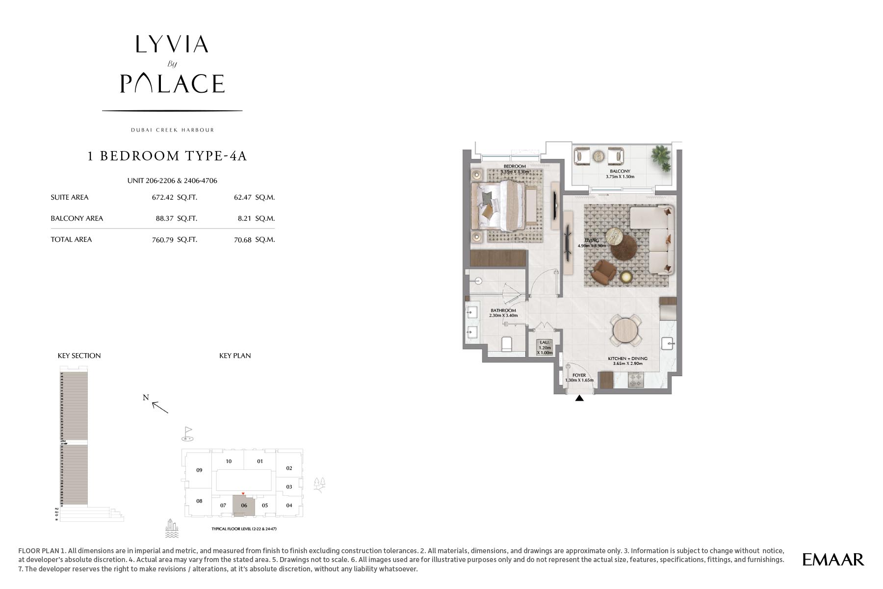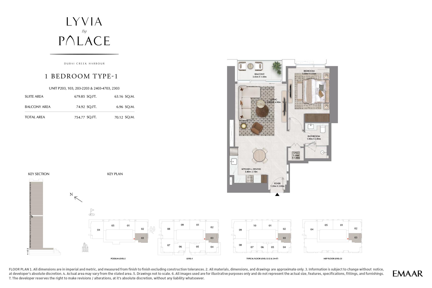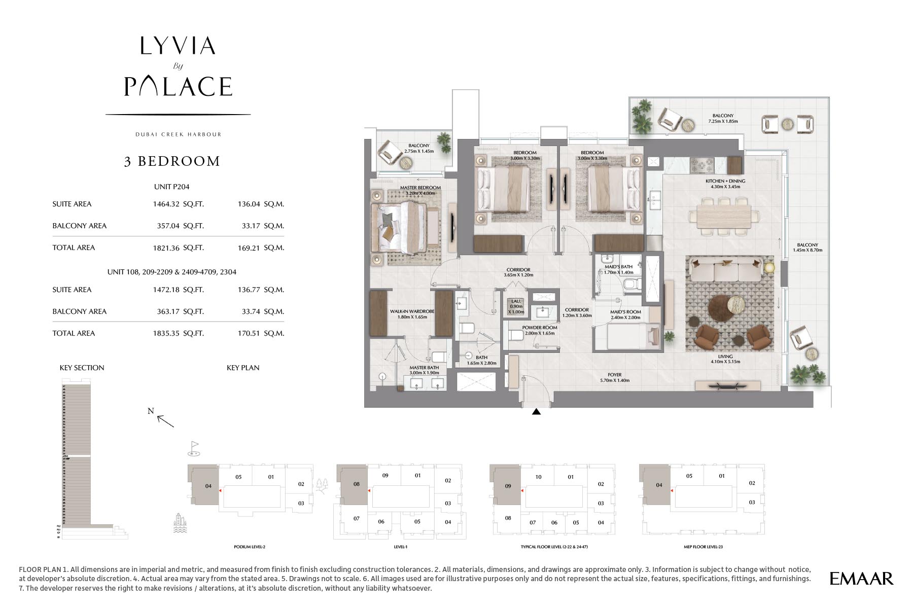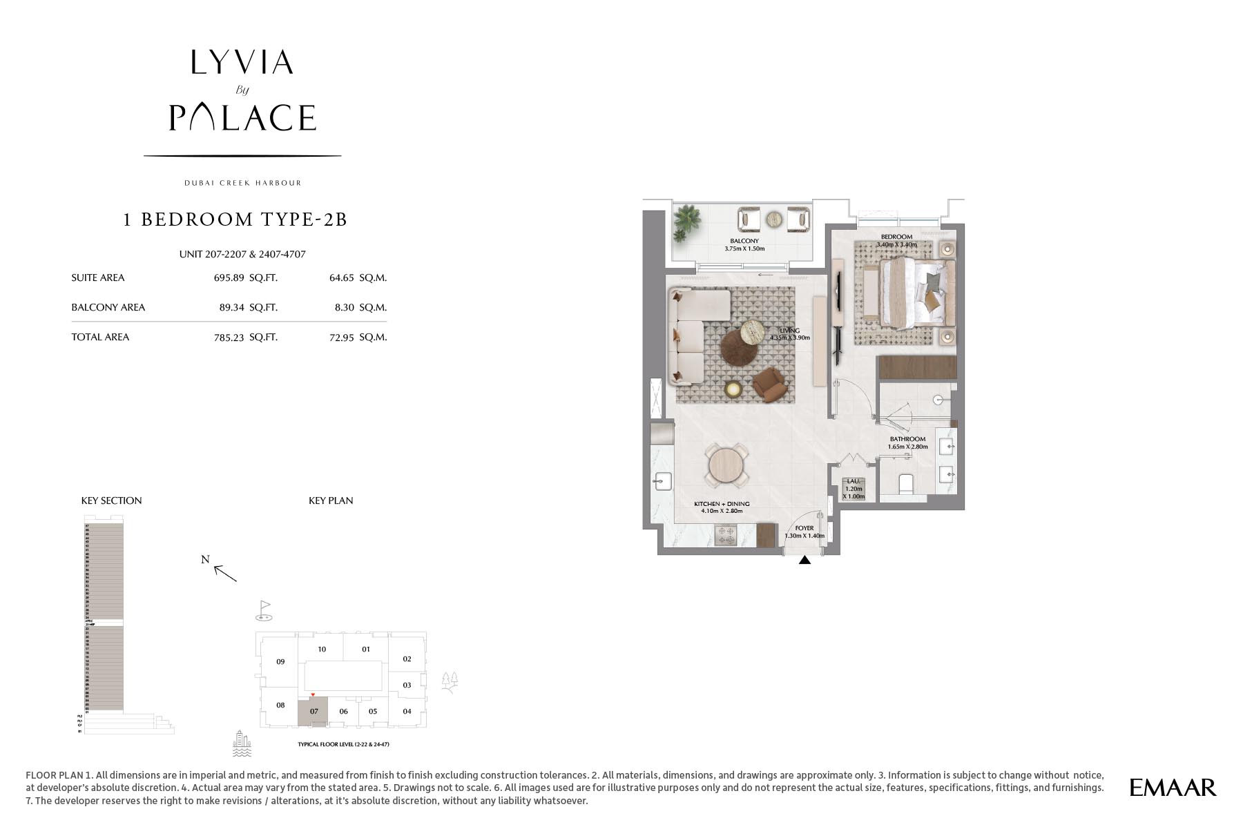 Lyvia by Palace Residences is a collection of luxurious and modern one-to-three-bedroom apartments and hotels like room which is located in Dubai Creek Harbour. Main feature of this brand project is the open living concept which provide dining area and kitchen area. Bedrooms are spacious with modern storage cupboard and en-suite bathrooms. It also consists of balcony that offer stunning views, with all the ambience. Floors are designed in such a way that bedrooms are connected with living area, kitchen and dining area very smoothly.