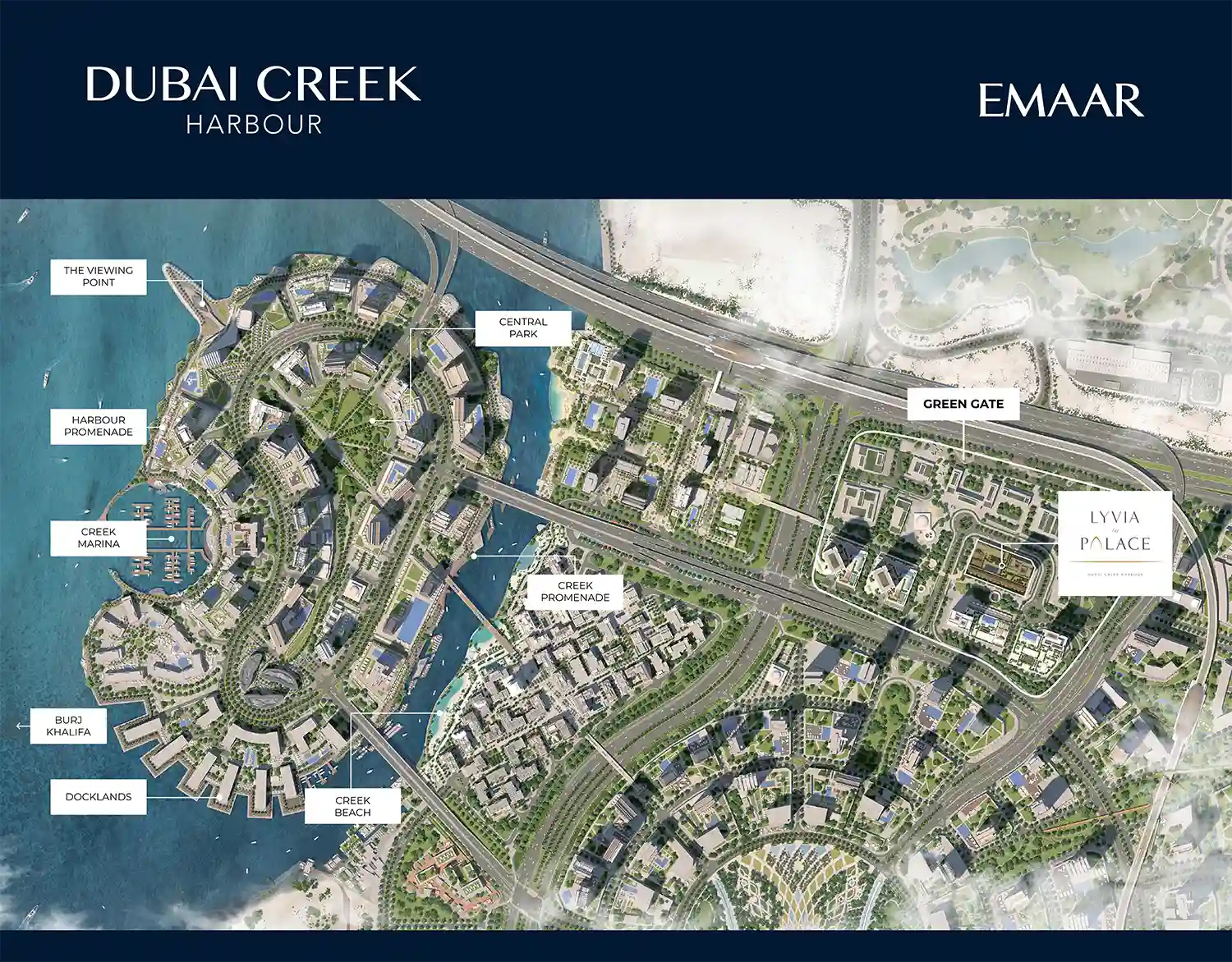 Emaar Properties has developed a well master planned project Lyvia by Palace at Dubai Creek Harbour. This development consists of various contemporary design which is balanced with nature within prestigious community. These high towers are designed with sustainability which is focused with around family basic needs. It is just like paradise that acquires various important things like multi-sport court, table tennis, badminton and pump tracks. This project is created to provide healthy, active, and luxurious living style. The security is very strict and it is for full 24 hours that focus on the privacy of all the families living there. It includes playground for kids, green and open spaces that relax and connect with nature.