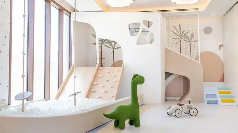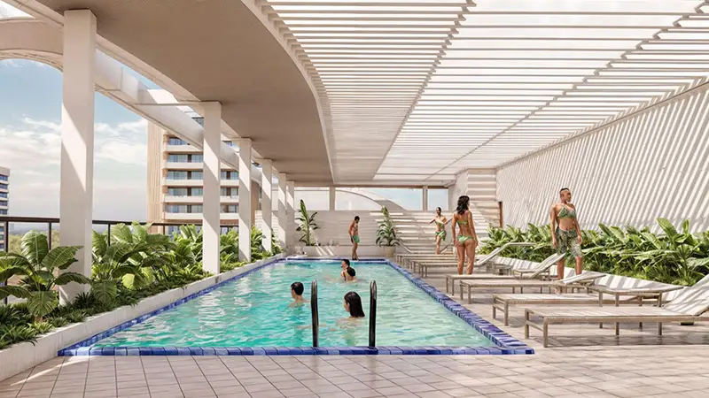 - Infinity pool, landscaped zen gardens, high-end fitness center, and children's play areas.