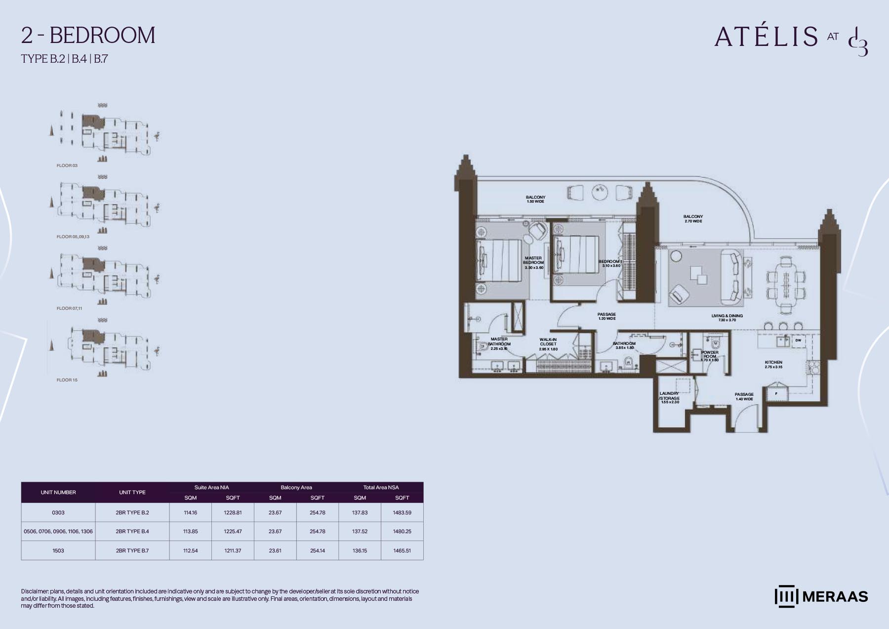 | Floor 03-15 | 2 Bedrooms | Type B2-B7 (Unit 0303-1503) | 1483.59 Sq Ft | Apartments |