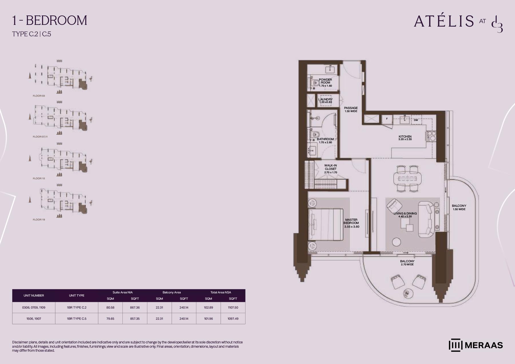 | Floor 03-19 | 1 Bedroom | Type C2-C5 (Unit 0306-1907) | 1107.50 Sq Ft | Apartments |