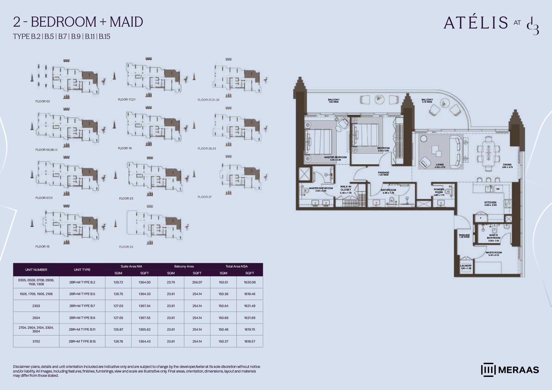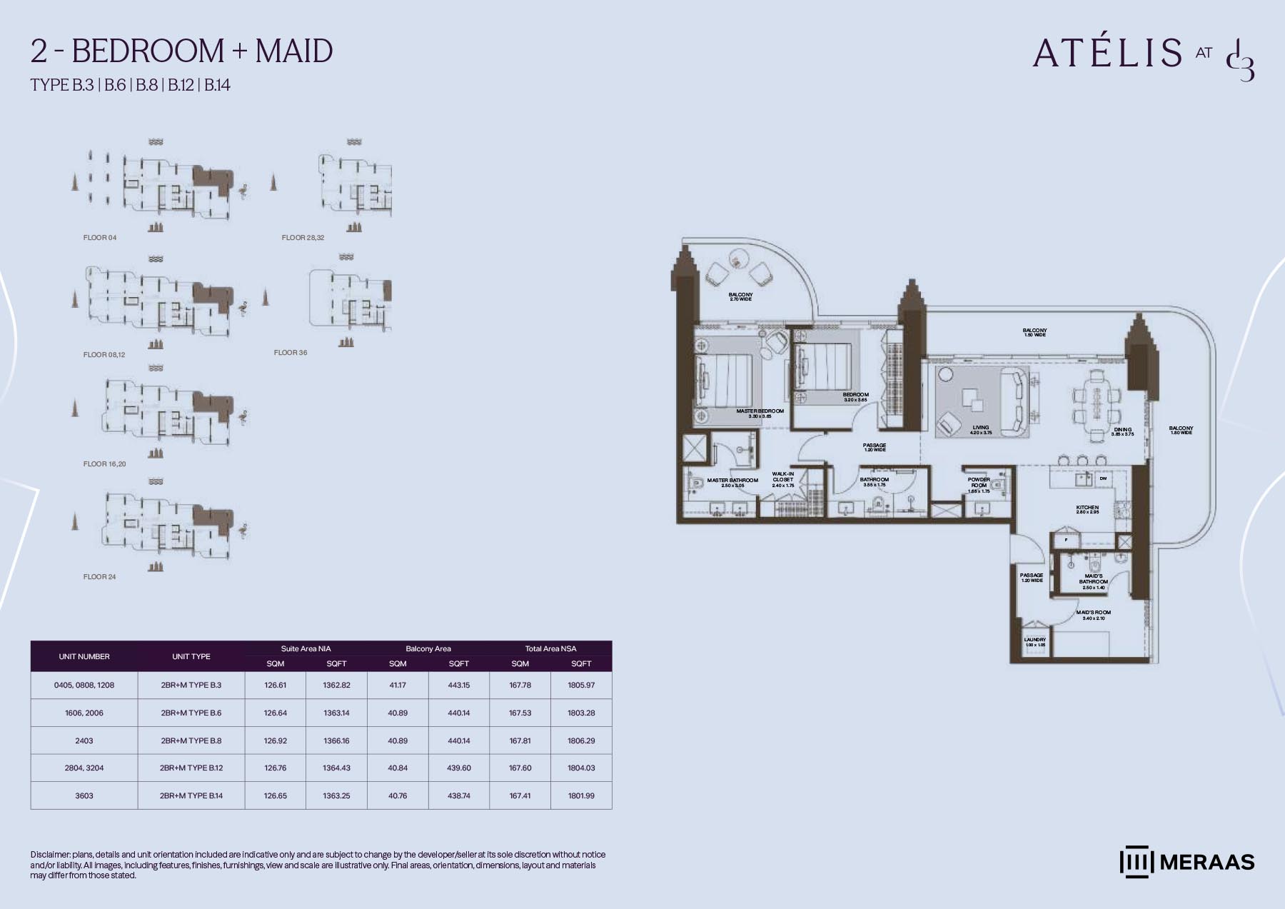| Floor 04-36 | 2 Bedrooms + Maid | Type B3-B14 (Unit 0405-3603) | 1806.29 Sq Ft | Apartments |