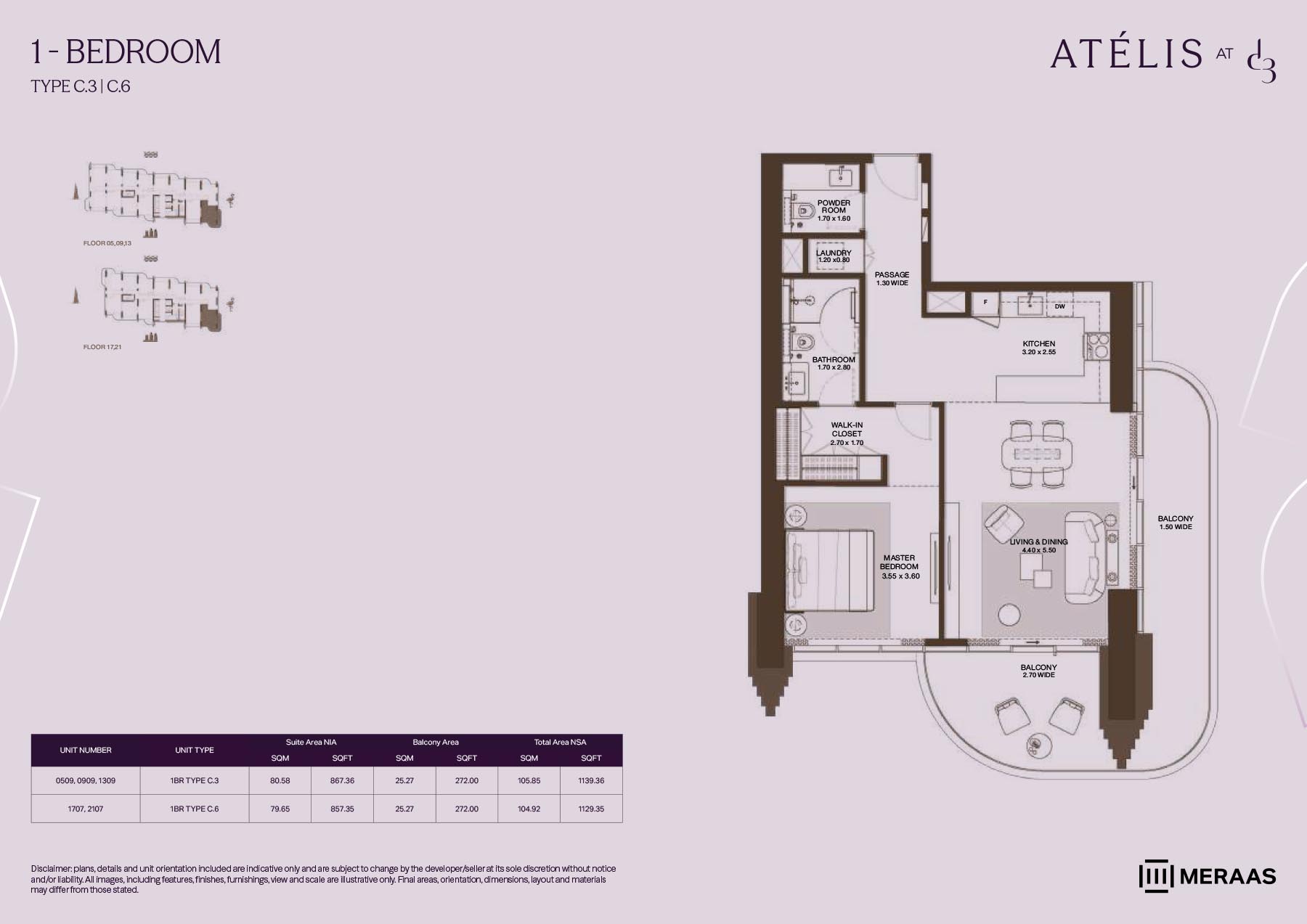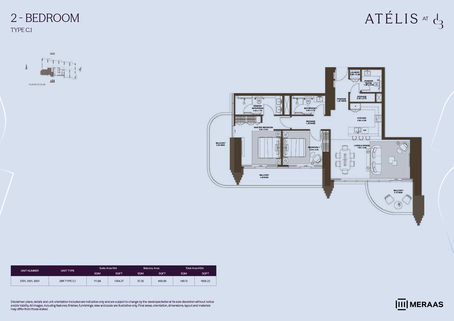 | Floor 27-35 | 2 Bedrooms | Type C1 (Unit 2701-3501) | 1605.22 Sq Ft | Apartments |
